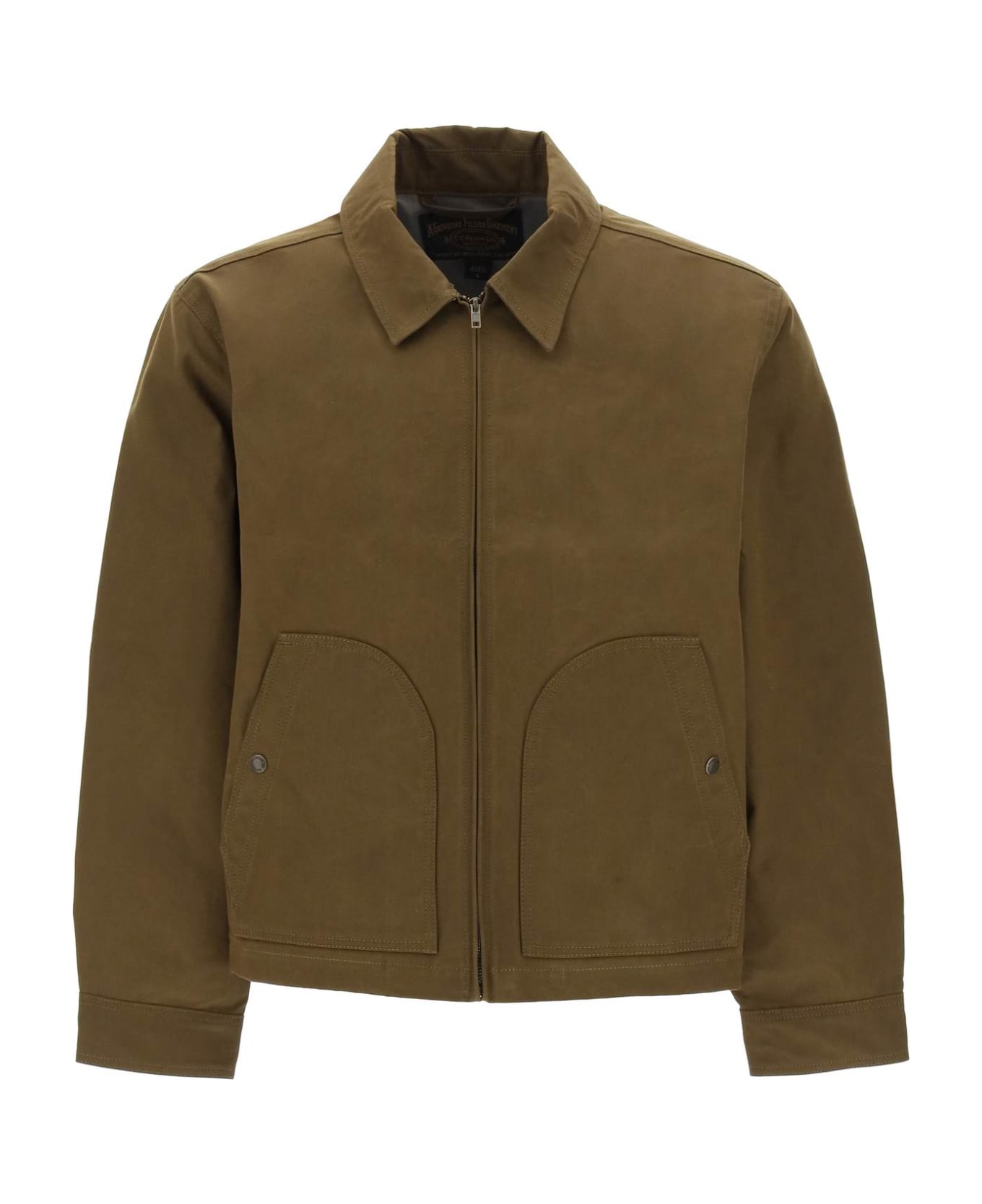 Crafted from sturdy dry-waxed cotton, this workwear-inspired zip-up jacket from Filson is weather resistant and offers a clean appearance, enriched by practical snap-fastened patch pockets. The comfortable fit can be button-adjusted at the cuffs and waist. Cotton lining. The model is 187 cm tall and wears a size L.