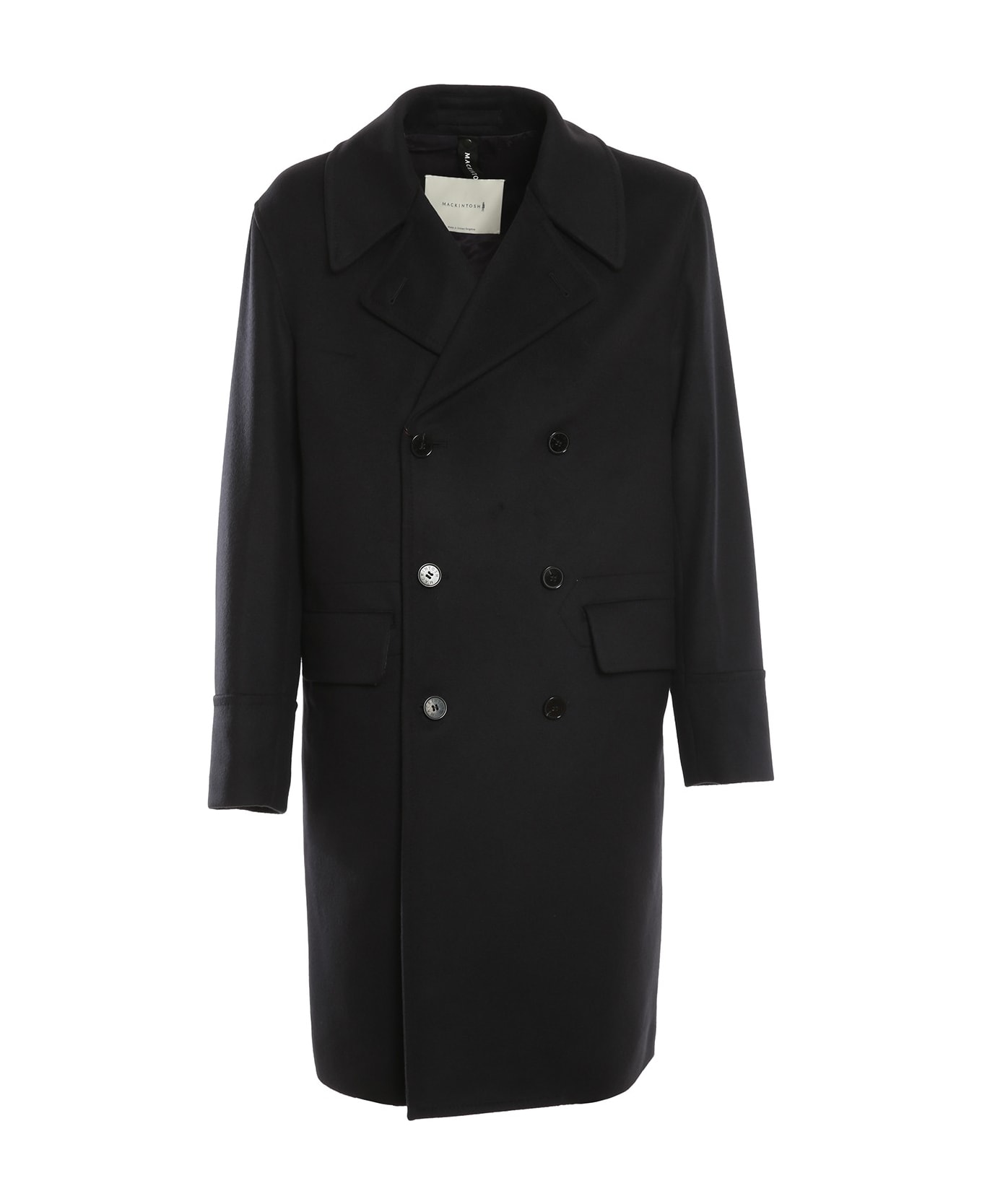 Mackintosh Blue double-breasted coat in wool and cashmere, button closure, front flap pockets, inside pockets.