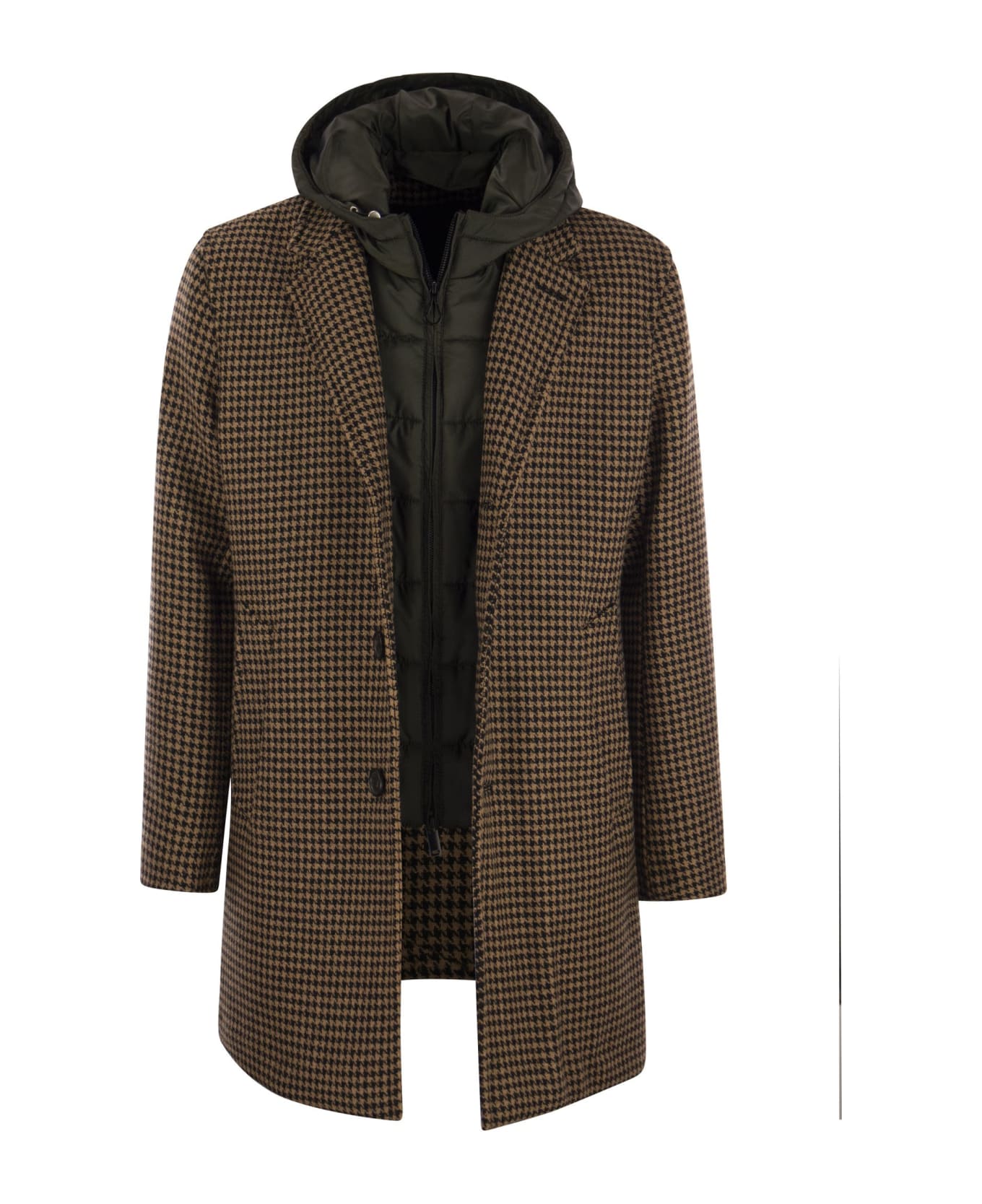 From the HYBRID line, 3-button single-breasted coat with detachable ultralight ripstop bib. It combines the sartorial world with the engineering of technical clothing in a perfect balance, creating a perfect collection of sportswear and overcoats characterised by excellent thermal performance and great comfort. - Single-breasted 3-button closure - Nylon quilted and cashpad padded interior - Regular fit DESIGNER ID: B31PUGERAPDW CNER