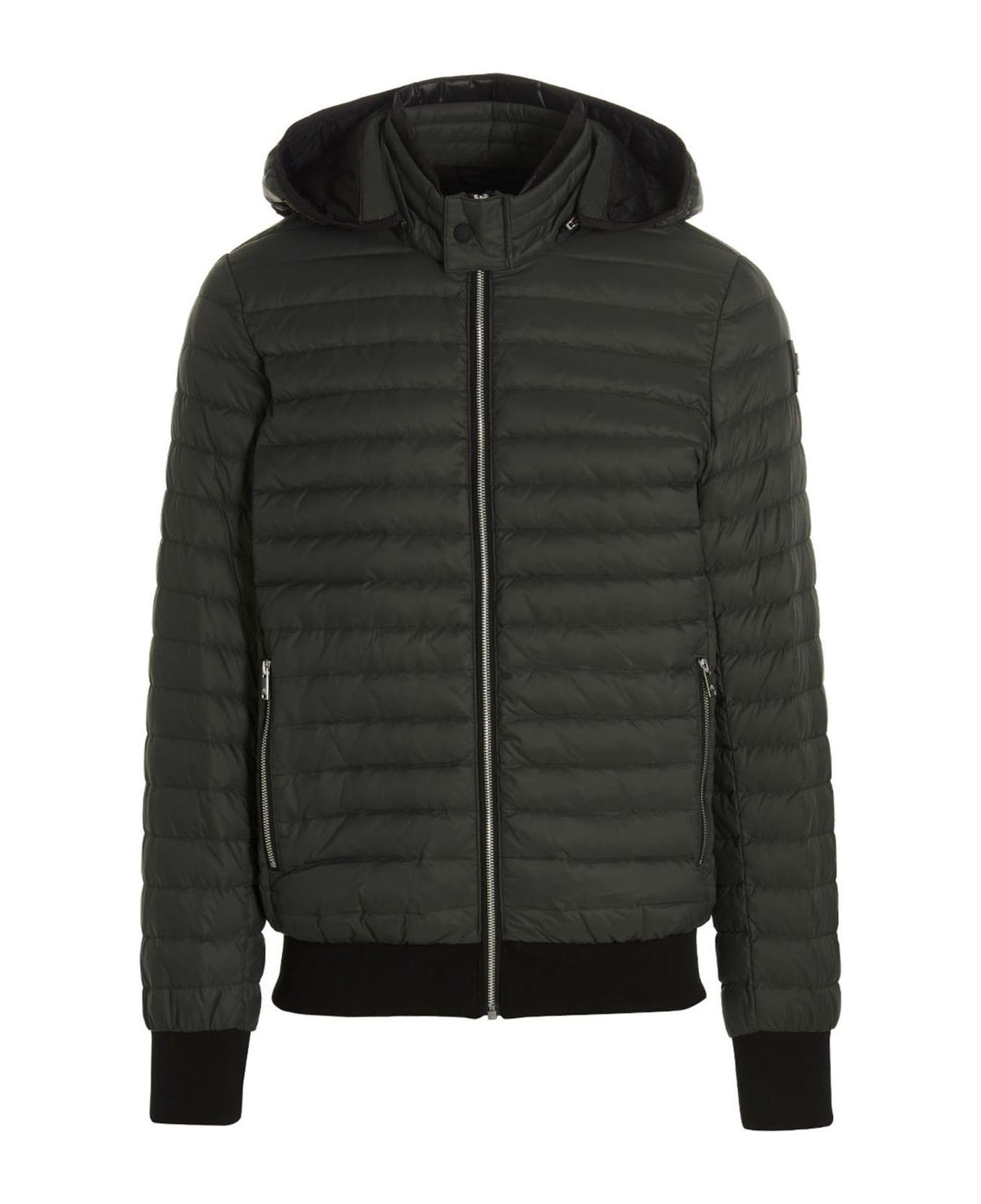 'Air Down Bomber' nylon jacket with feather padding, zip closure, removable hood, pockets, long sleeves with knitted cuffs, logo patch on the sleeve. : This product is made from recycled materials. Composition: 100% recycled nylon