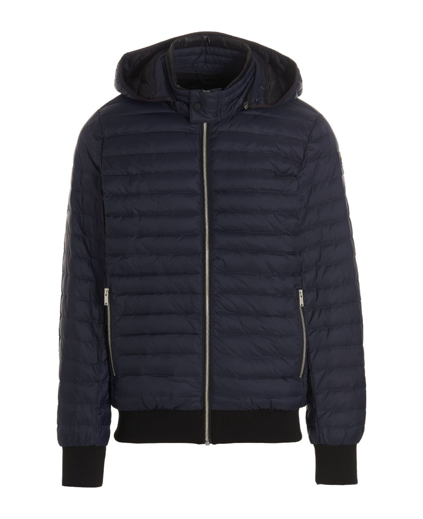 'Air Down Bomber' nylon jacket with feather padding, zip closure, removable hood, pockets, long sleeves with knitted cuffs, logo patch on the sleeve. : This product is made from recycled materials. Composition: 100% recycled nylon