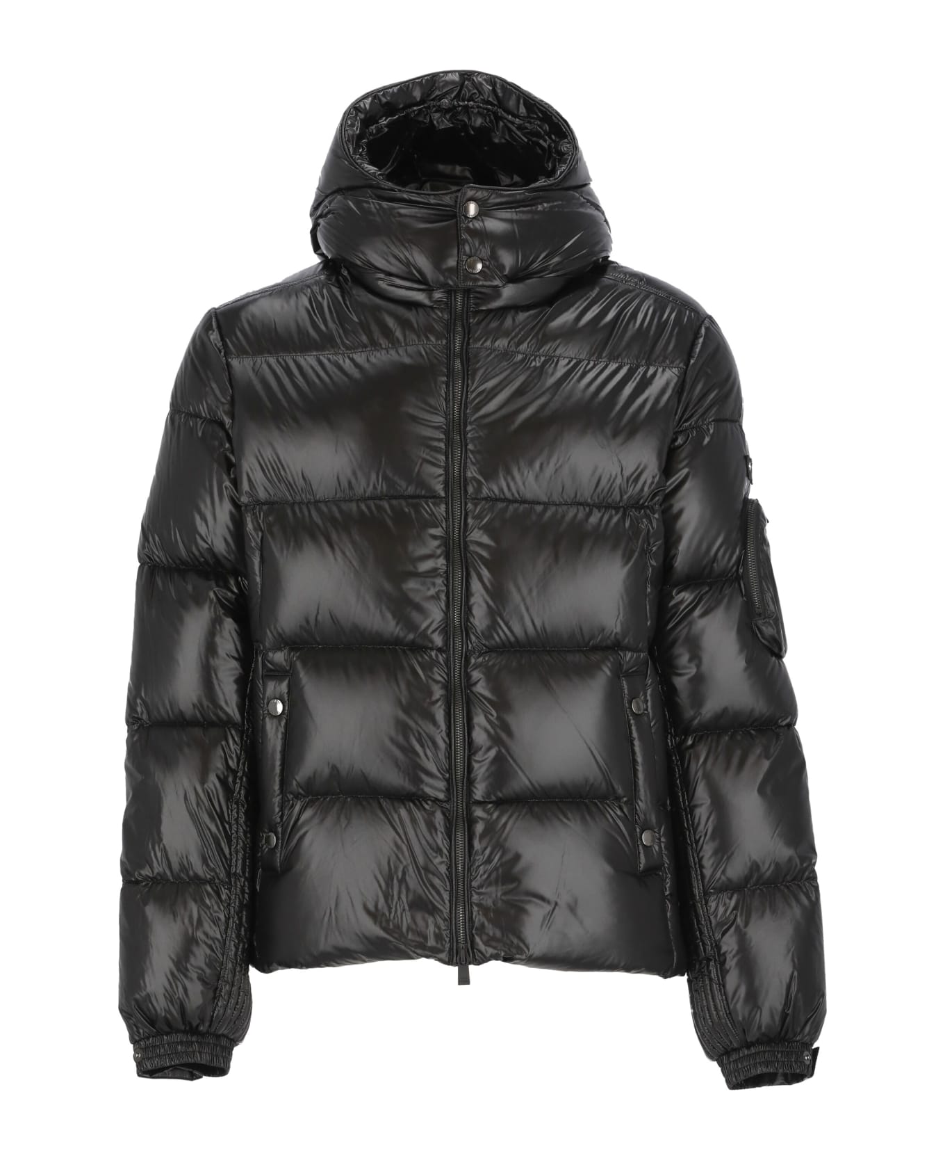 - Black Tatras padded and quilted down jacket for man - Hood with drawstrings - Fron double slider zip fastening - Long sleeves with button at cuffs - Tone on tone logoed patch at left sleeve - Two side snap buttons fastening pockets - One zip fastening pocket at left sleeve - One internal zip fastening pocket