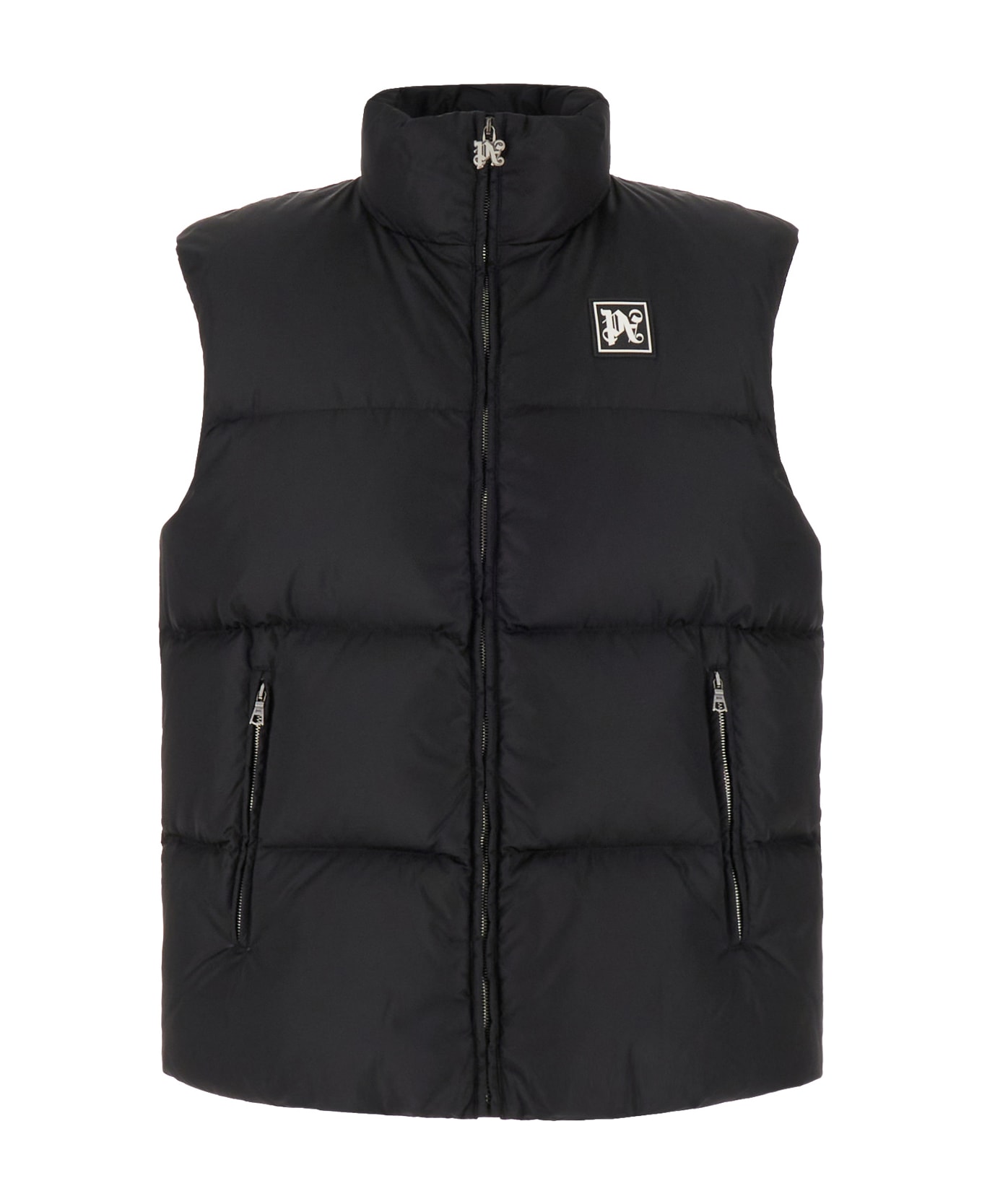 Sleeveless down jacket realized in nylon enriched by contrasting rubberized logoed patch on the chest. -Funnel neck -Zip closure -Two zip pockets at the front -Lined interior with a slit pocket