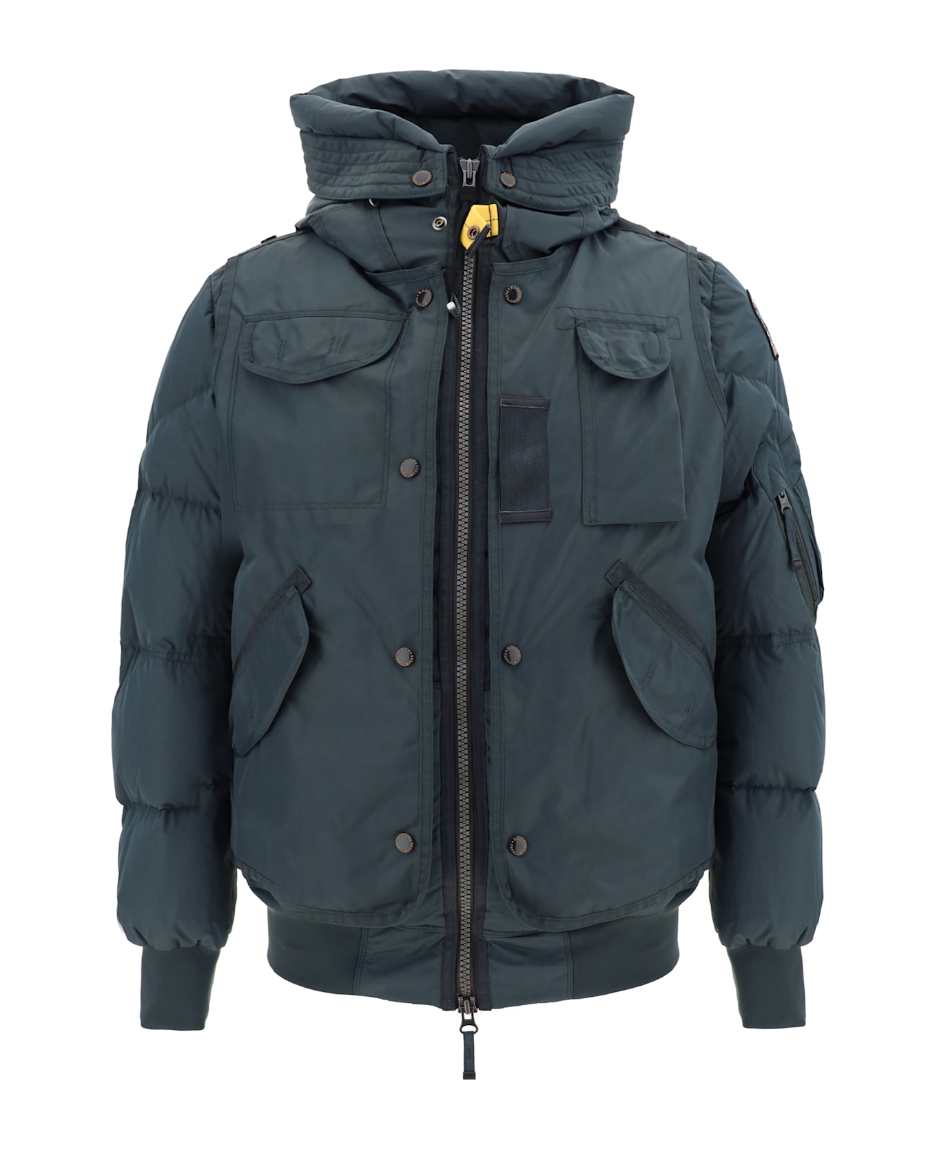 Carrier down jacket by parajumpers, model with drawstring-adjustable hood, two-slider zipper closure, two front slit pockets closable by zipper, iconic brand monogram patch applied on left sleeve padded design, elastic ribbed cuffs, ribbed hem, all-over quilted and padded design, regular fit. appliqué vest removable by snap buttons on front, two side flap welt pockets, one slit pocket with flap on front, patch flap pocket on front panel.