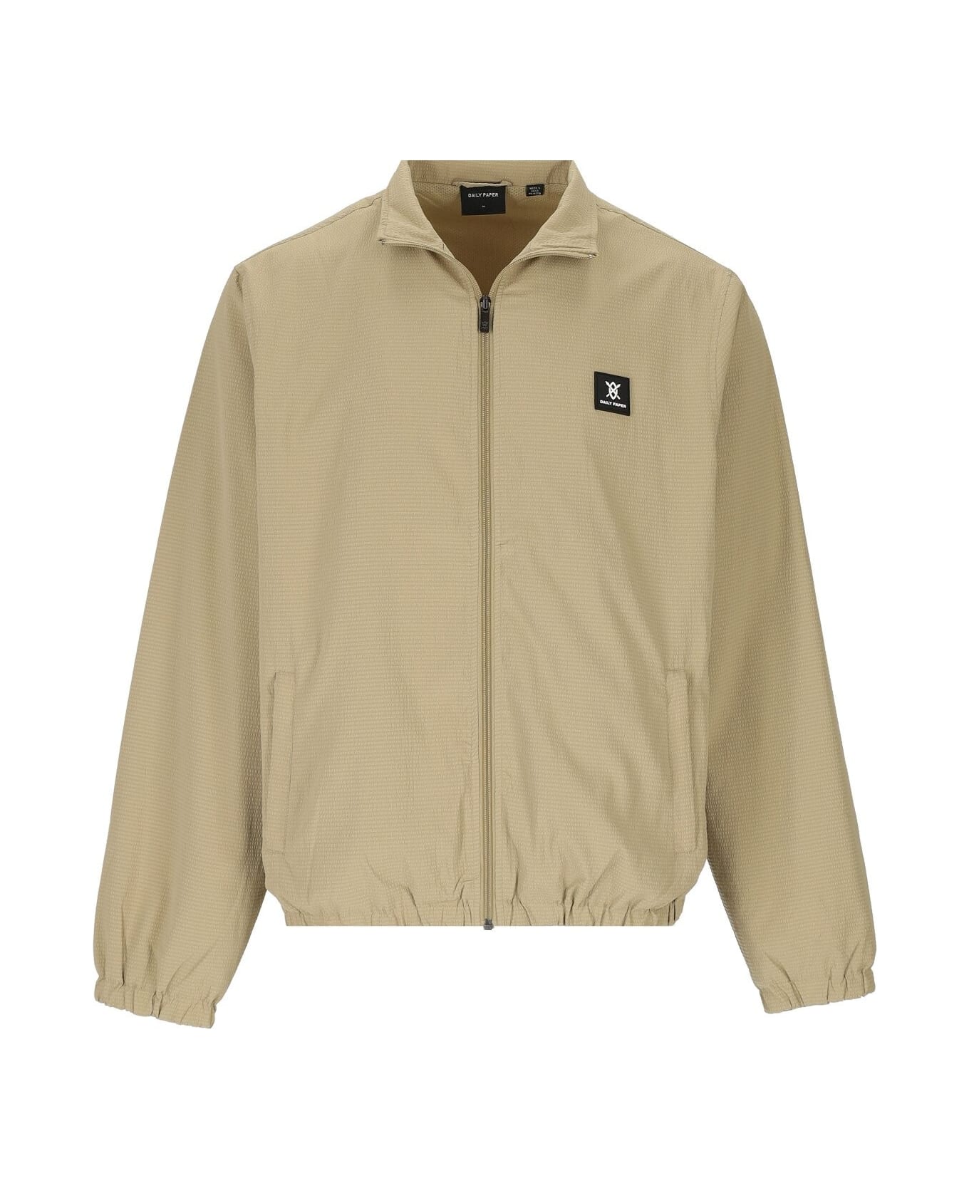 Daily Paper Peyisai jacket made of beige textured fabric with mesh lining, rubberized logo patch on the chest and zipped pockets on the front. Elasticated cuffs and hem, zip fastening. Relaxed fit. Composition: 100% polyester.