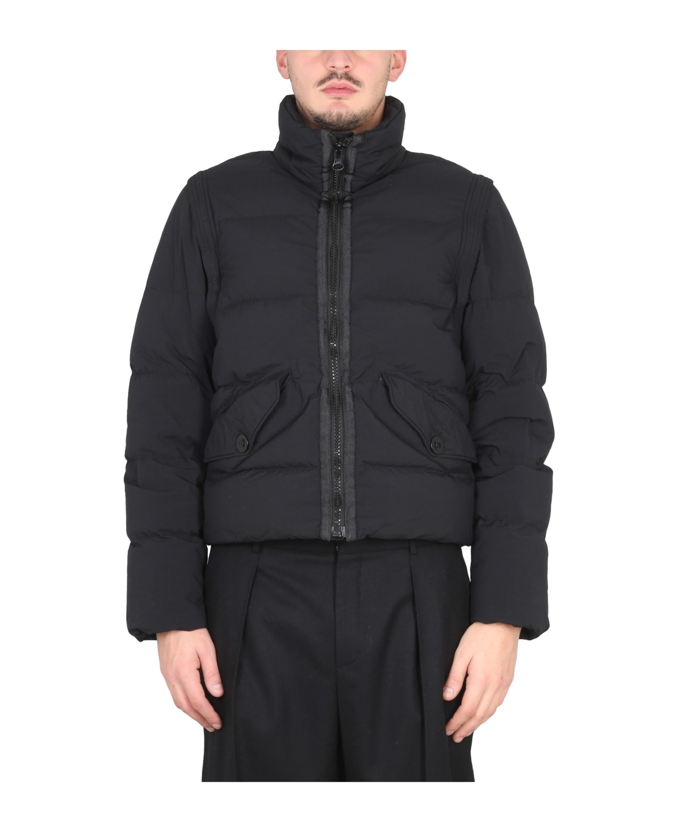 - High Neck- Zipper Closure- Removable Sleeves- Side Flap Pockets- Regular Fit- Lined And Padded Interior- 100% Polyamide- Made In Italy- The Model Is 190 Cm Tall And Wears Size 48 It