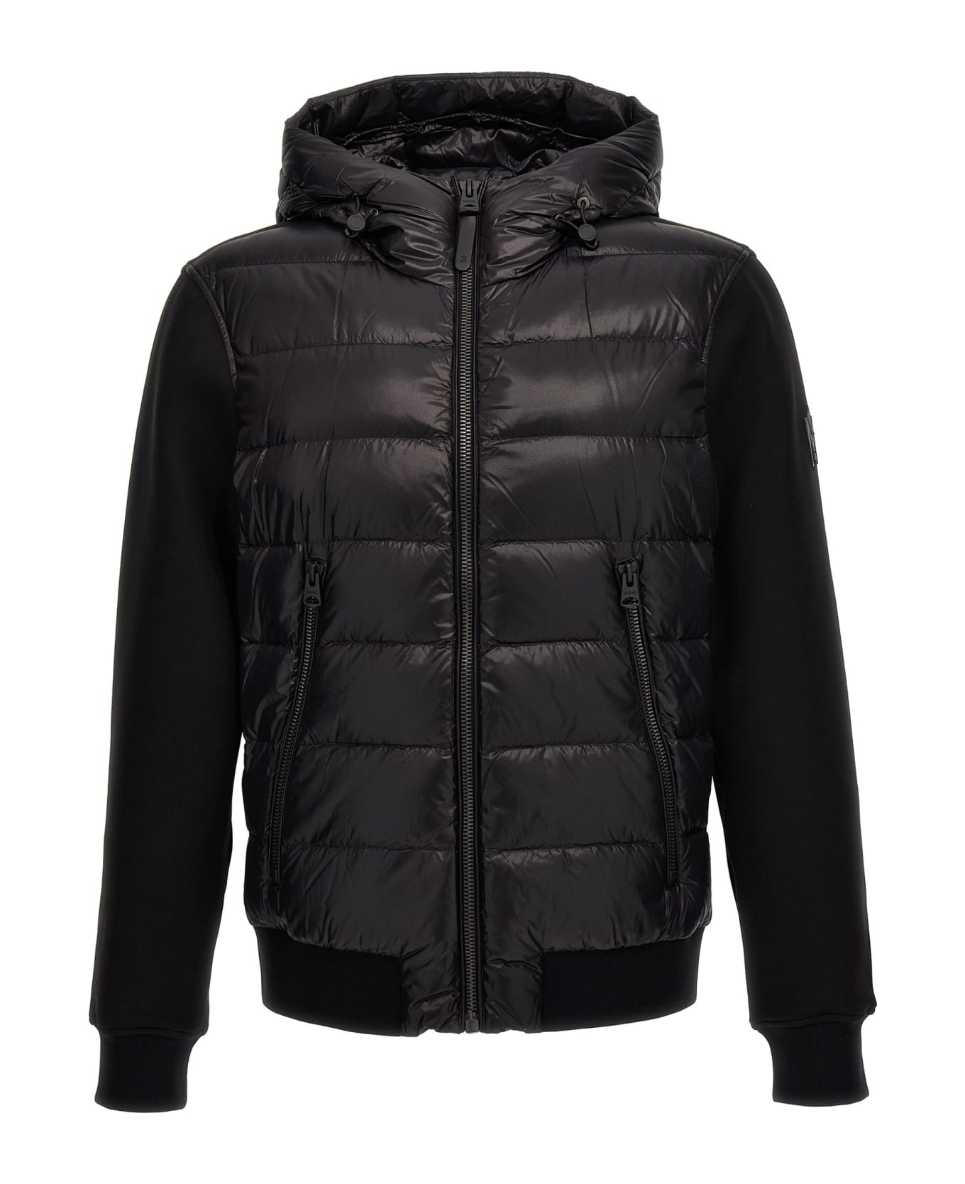 'Frank-R' nylon padded and knitted down jacket with hood, zip closure, pockets, long cuffed sleeves. Composition: 53% cotton, 47% polyester