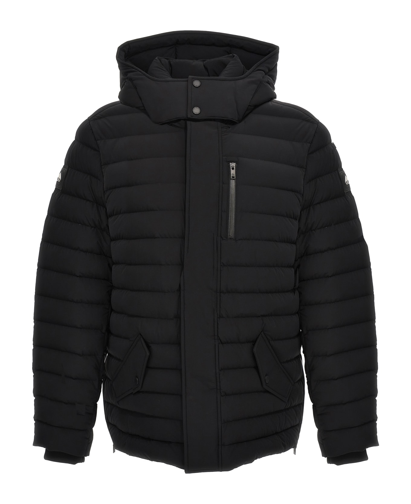 'Greystone' stretch nylon down jacket with duck down padding, zip and button closure, removable hood, pockets, long sleeves with knitted cuffs. Composition: 82% nylon, 18% elastane