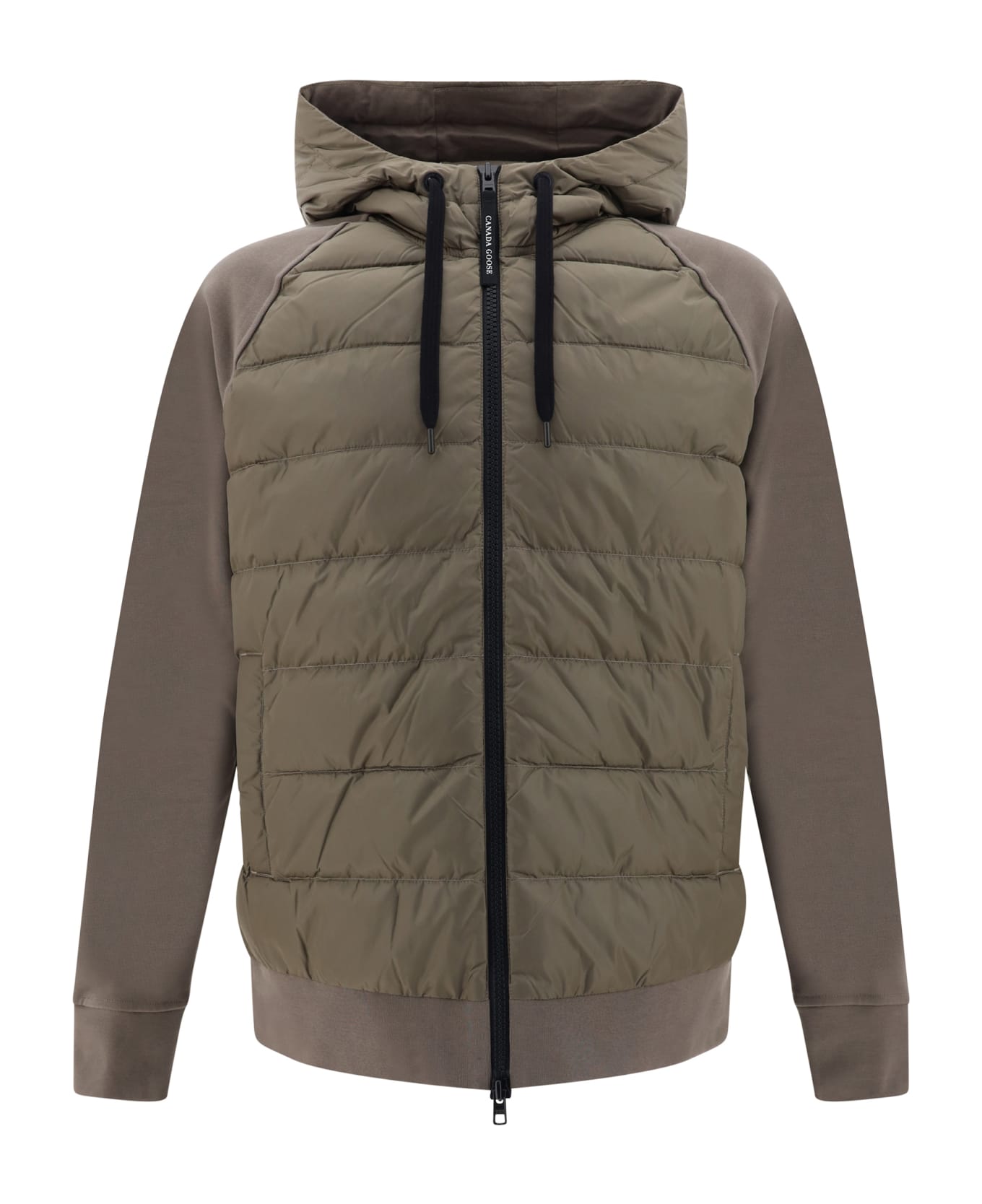 Hybridge hoodie by canada goose, panel design, front zipper with double slider, model with hood, two side welt pockets, padded and quilted design on the front panel, ribbed cuffs, patch with iconic brand logo embroidered on the left shoulder. Composition: 100% % Cotton