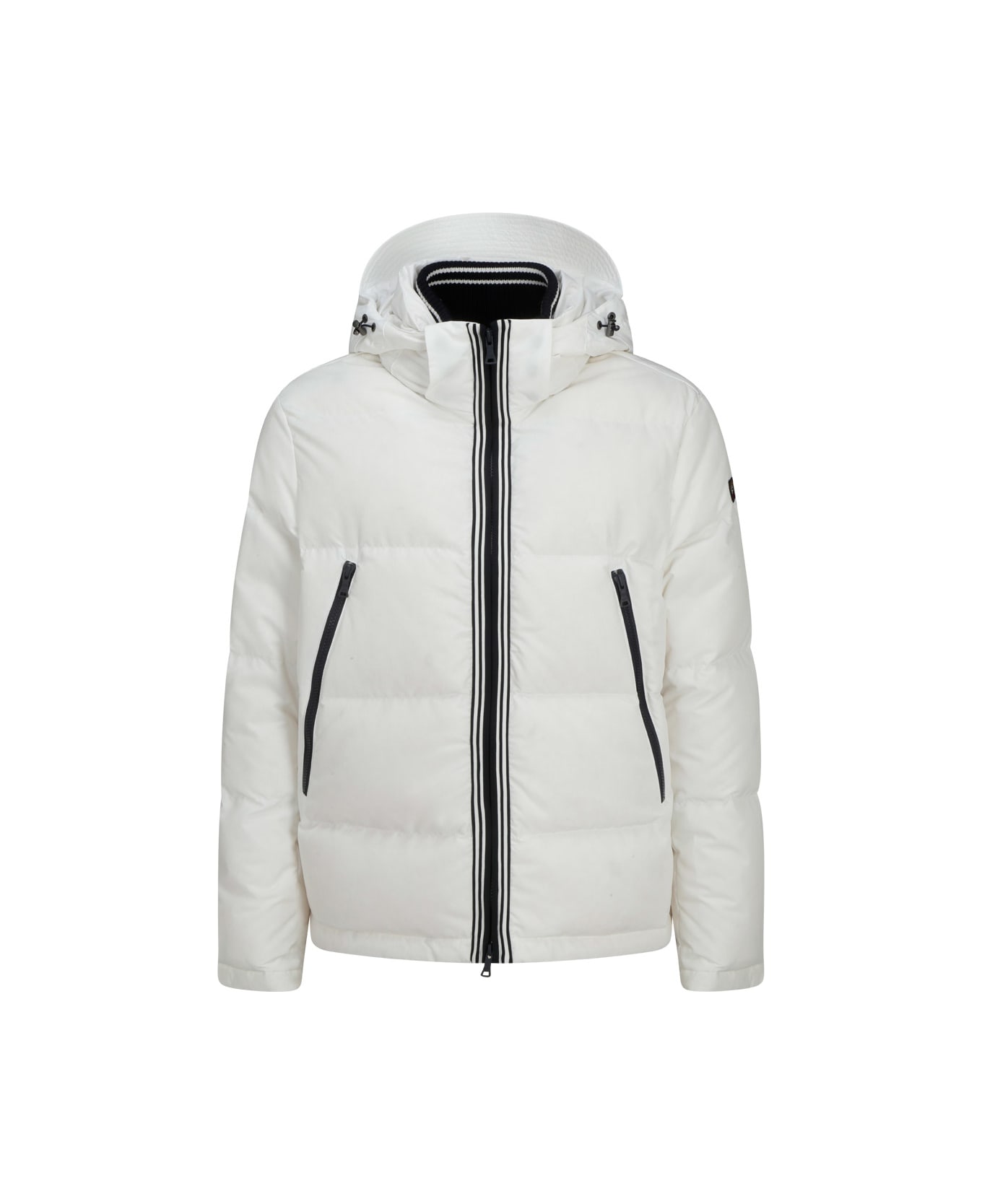 Jacket by paul&shark, front zip fastening, maxi side welt pockets with zip, drawstring hood, padded and quilted design, patch with iconic brand monogram embroidered on left arm.