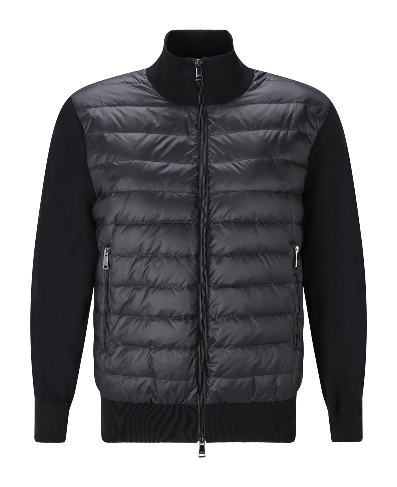 Jacket by paul&shark, double-slider front zipper closure, high collar design, two side welt pockets, quilted and padded torso, elastic ribbed cuffs, regular fit, iconic brand monogram patch applied to sleeve, monochrome design, regular fit.