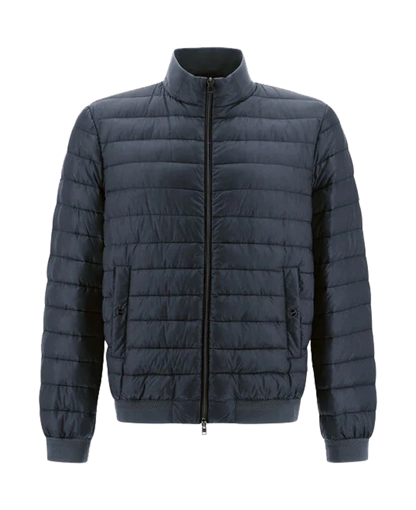 Regular fit Feather padding Polo neck Long sleeves Double slider zip closure Welt pockets with snap button Knitted edges Composition: 100% Polyamide