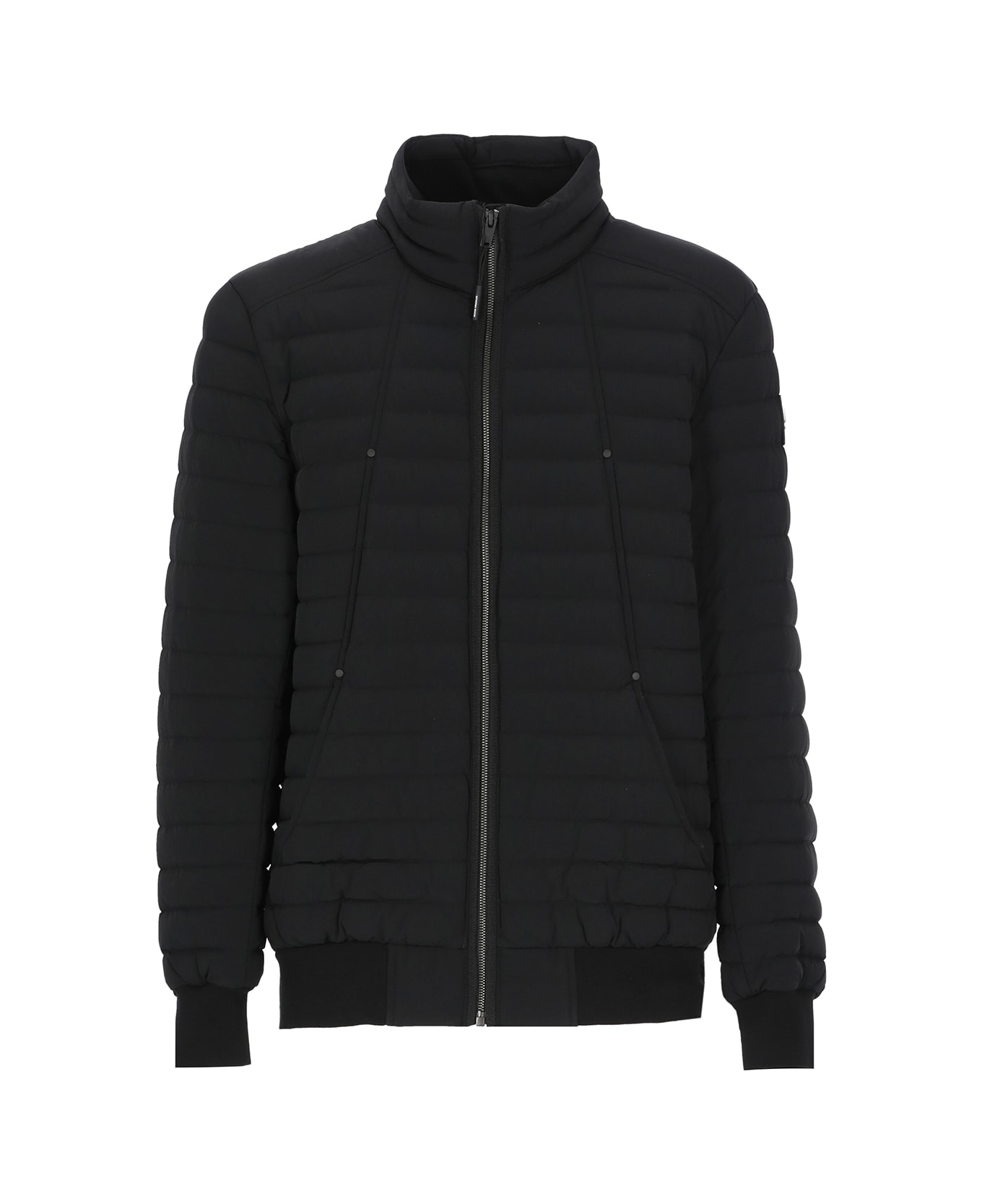 - Black Moose Knuckles padded and quilted bomber jacket for man - High neck - Long sleeves with elastic at hem - Front zip fastening - Two front slit pockets - Patch with metallic logo at left sleeve - One internal zip pocket - Elastic at hem