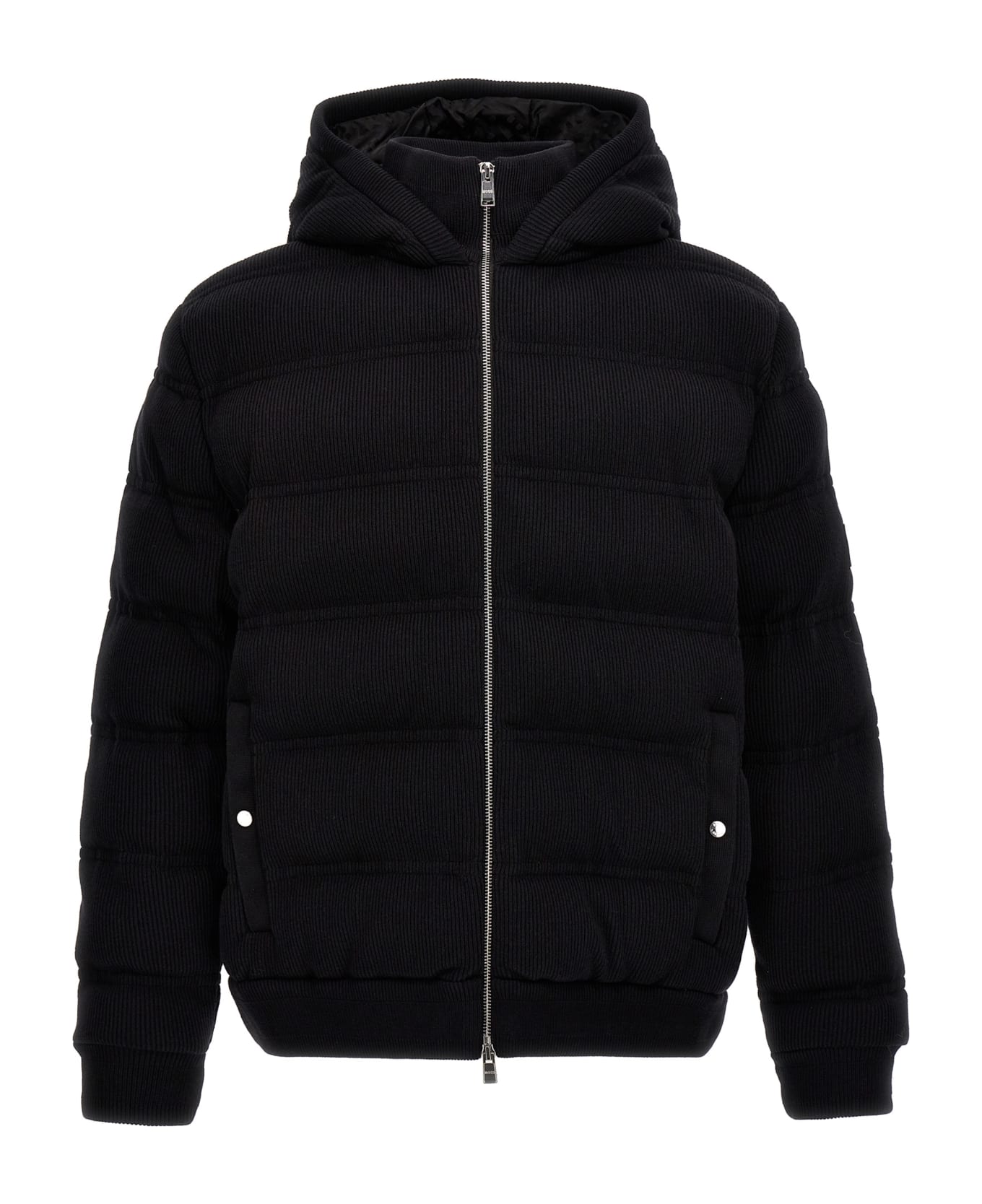 'Misu' hooded ribbed knit puffer jacket with padding, zip closure, pockets, long cuffed sleeves.