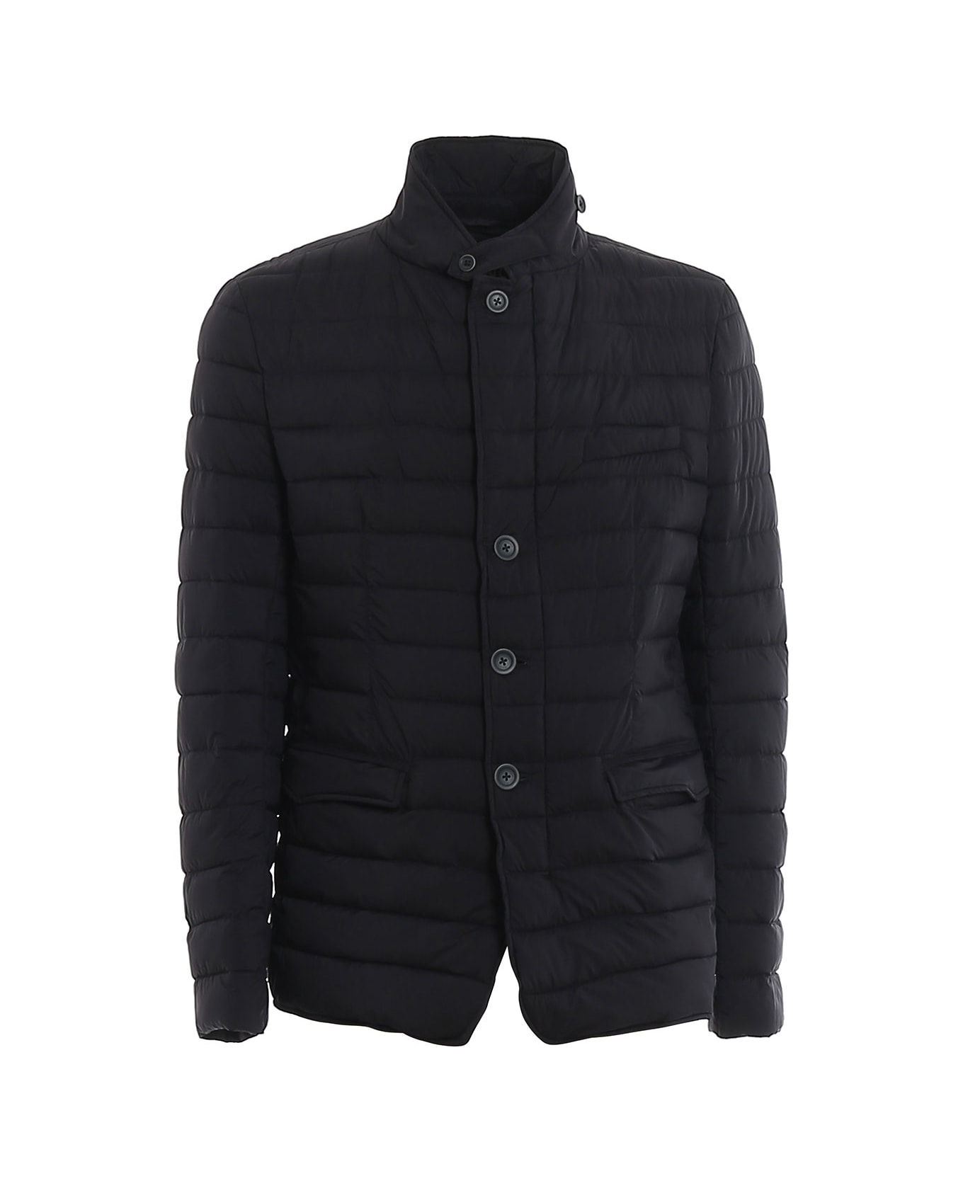 Herno Field Jacket quilted blue, padded with goose down, water repellent fabric, side pockets with flap, breast pocket, inside pockets, zip and button closure, collar with button. Composition: 100% Pa