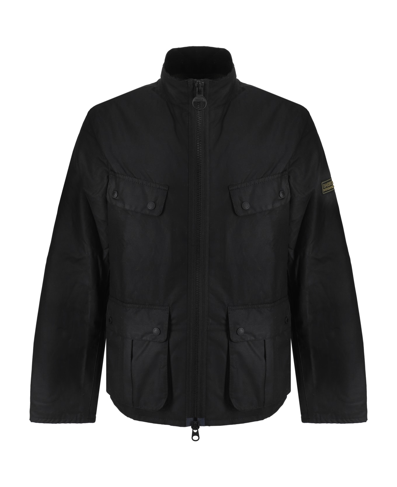 Cotton re-duke wax jacket by barbour, featuring a high collar, front closure by means of a double-slider zipper, four welt flap patch pockets on front, iconic brand monogram patch on left sleeve, quilted design, monochrome pattern, regular fit.