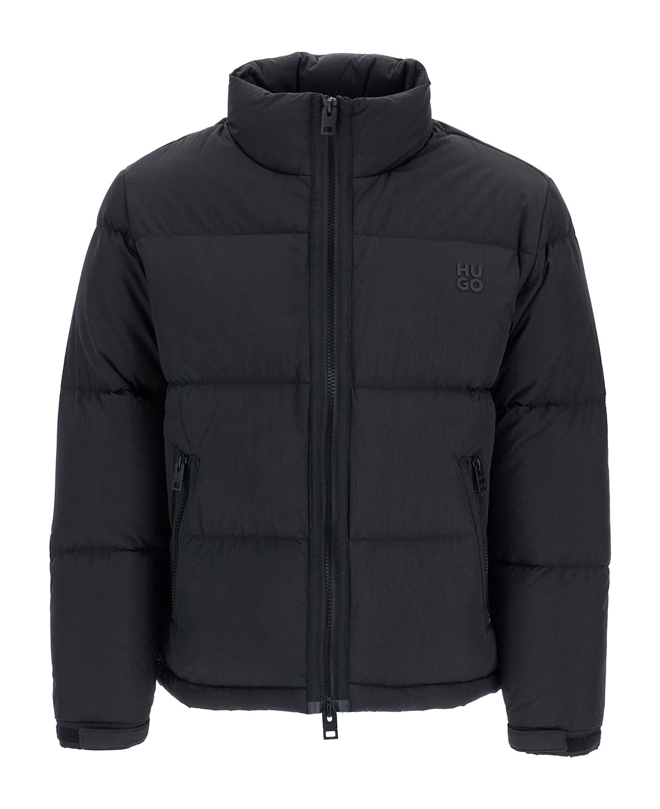 HUGO men's jacket padded black for autumn-winter 2024. Minimalist design in polyamide with high collar and zip. Thermal comfort and versatile style for casual and elegant looks.