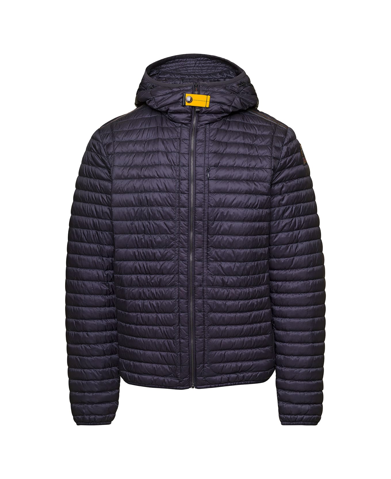 Down jacket Fixed hood Quilted and padded Front zip fastening Long sleeves Elasticated cuffs Logo patch on sleeve Tonal stitching Straight hem Blue Polyamide Regular fit