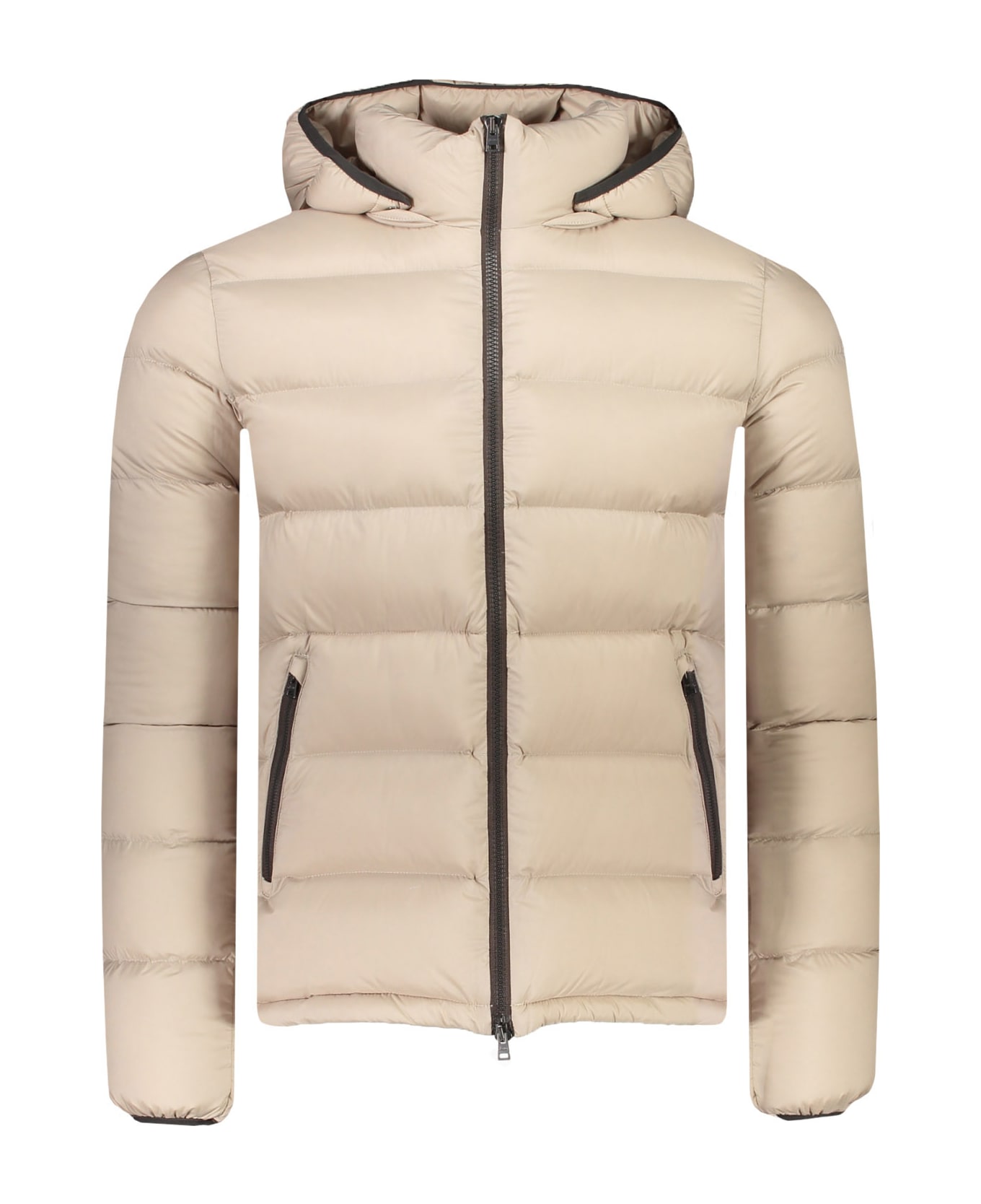 Taupe down jacket with removable hood and zip closure from Herno. - fit the true size