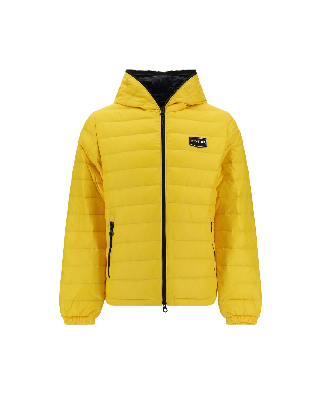 Tolando down jacket by duvetica, front closure with double-slider zipper, jacket with hood, elastic cuffs, two side welt pockets with zipper, contrasting brand logo plaque applied to front.