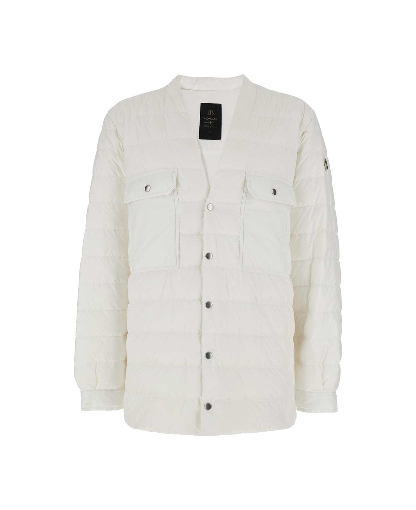 White Down Jacket With Logo Patch On The Sleeve And Snap Buttons In Tech Fabric Man