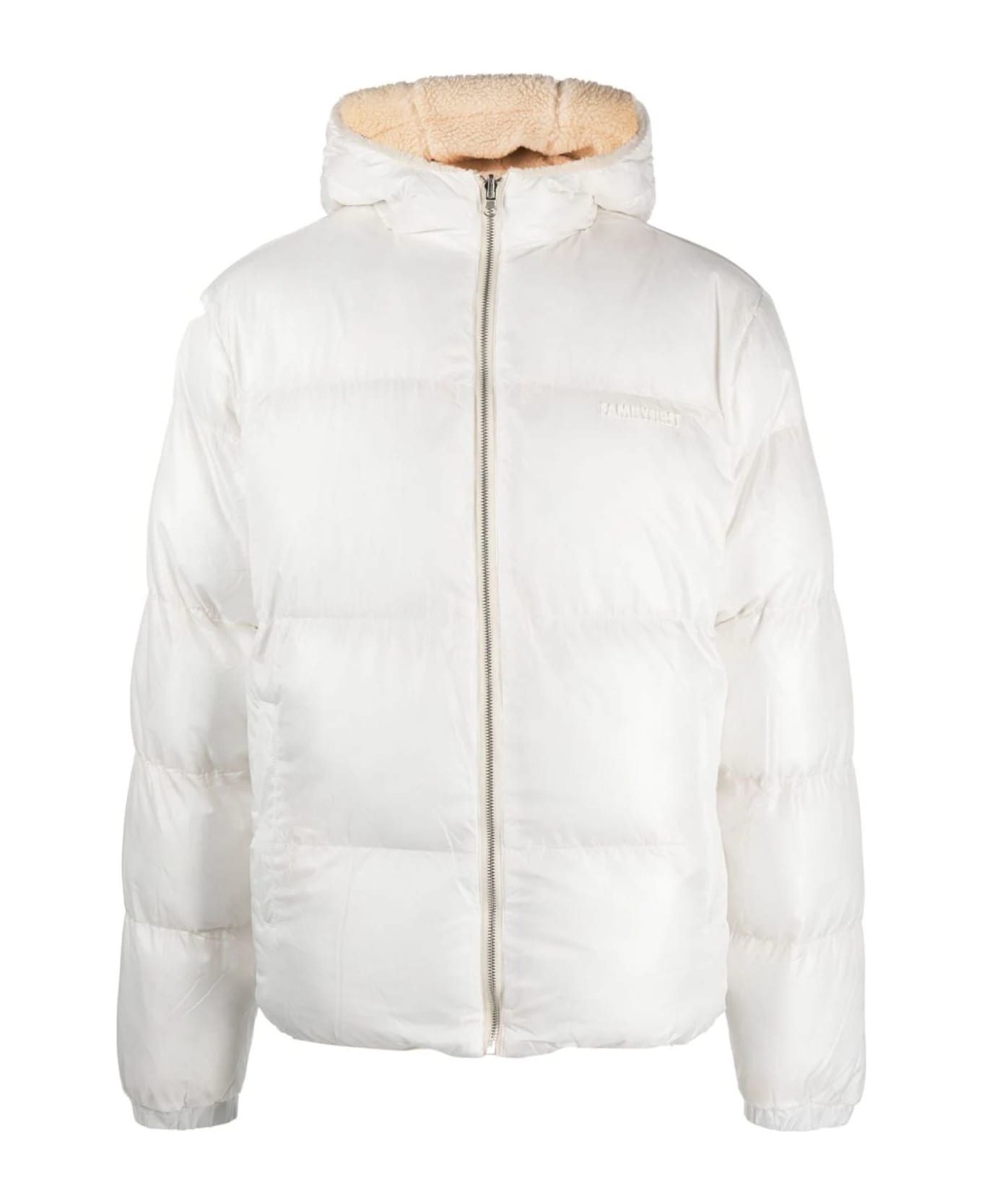 White reversible padded jacket, padded design, quilted, logo print at the chest, classic hood, front zip fastening, long sleeves, elasticated cuffs, two side inset pockets, straight hem Composition: Polyester, 100%