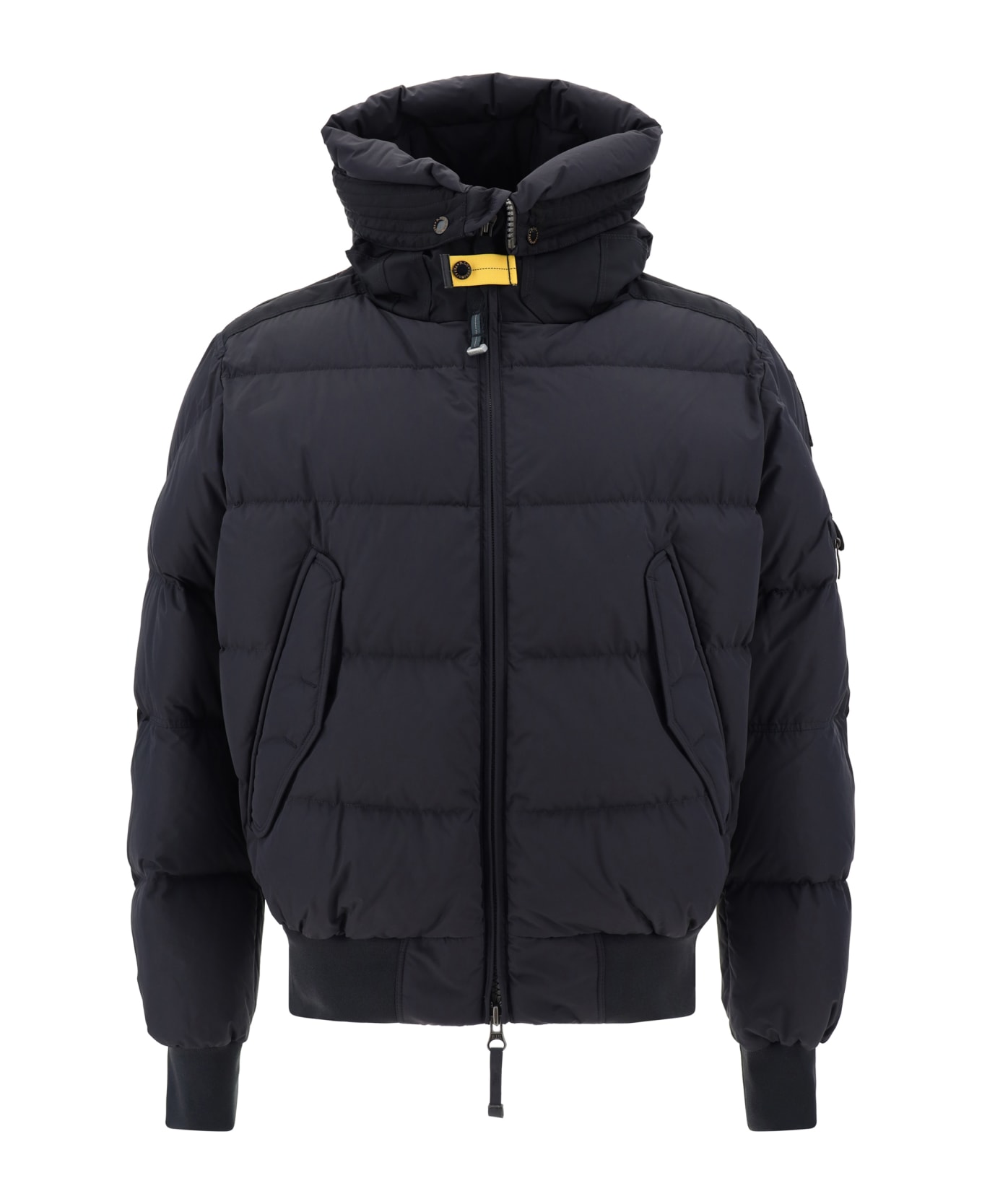 Wilmont down jacket by parajumpers, high-necked hooded design, front closure by two-slider zipper, two flap closure pockets applied on the front, collar closed with iconic contrasting hook and eye with snap button, elastic ribbed cuffs, elastic ribbed sleeve patch pocket, elastic ribbed hem, iconic brand logo patch applied on the left sleeve, padded and quilted design, monochrome pattern, regular fit.
