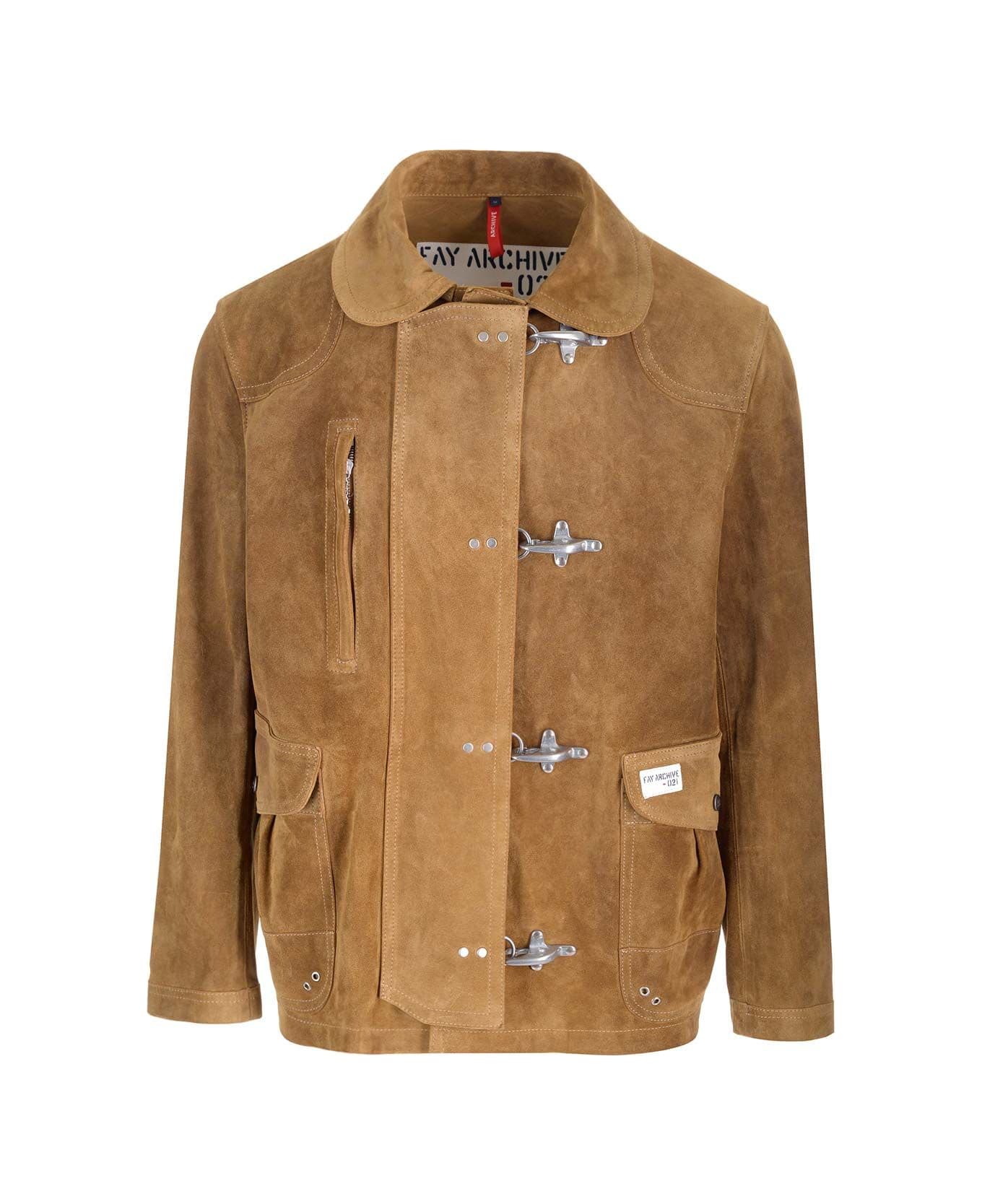 "4 Ganci Archive" suede jacket from Fay with maxi pockets with flap and snap, hidden snap closure, relaxed fit.