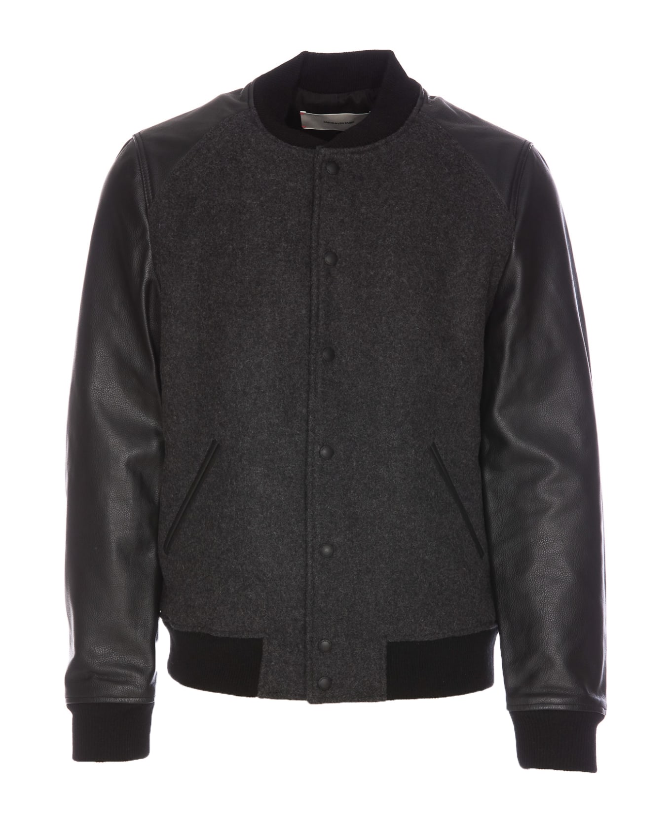 Zadig&Voltaire grey bomber jacket with frontal buttons closure, crewneck, faux leather effect on sleeves, elasticized cuffs, lateral pockets, patch tone on tone logo on the back