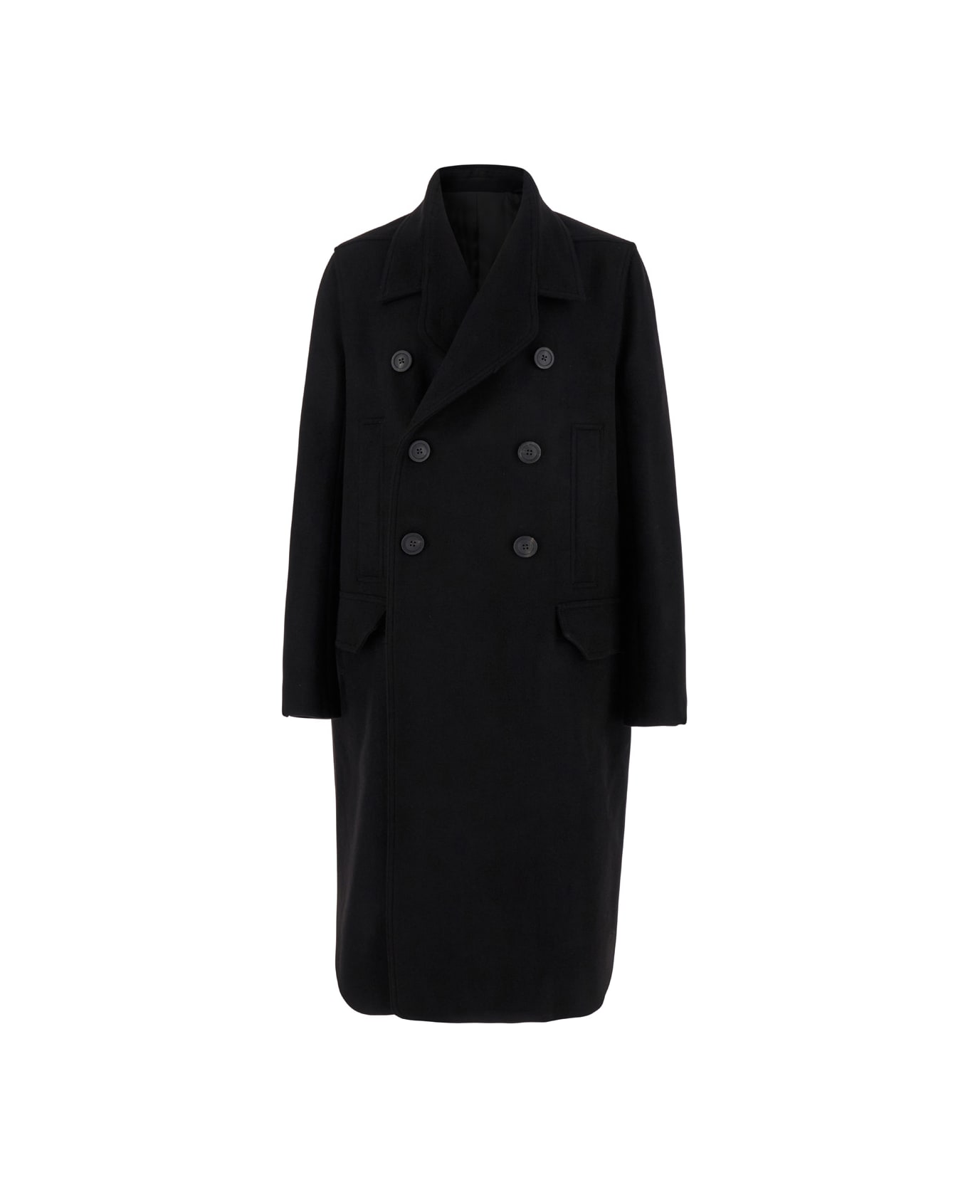 Black Double-breasted Coat With Wide Revers In Wool Man