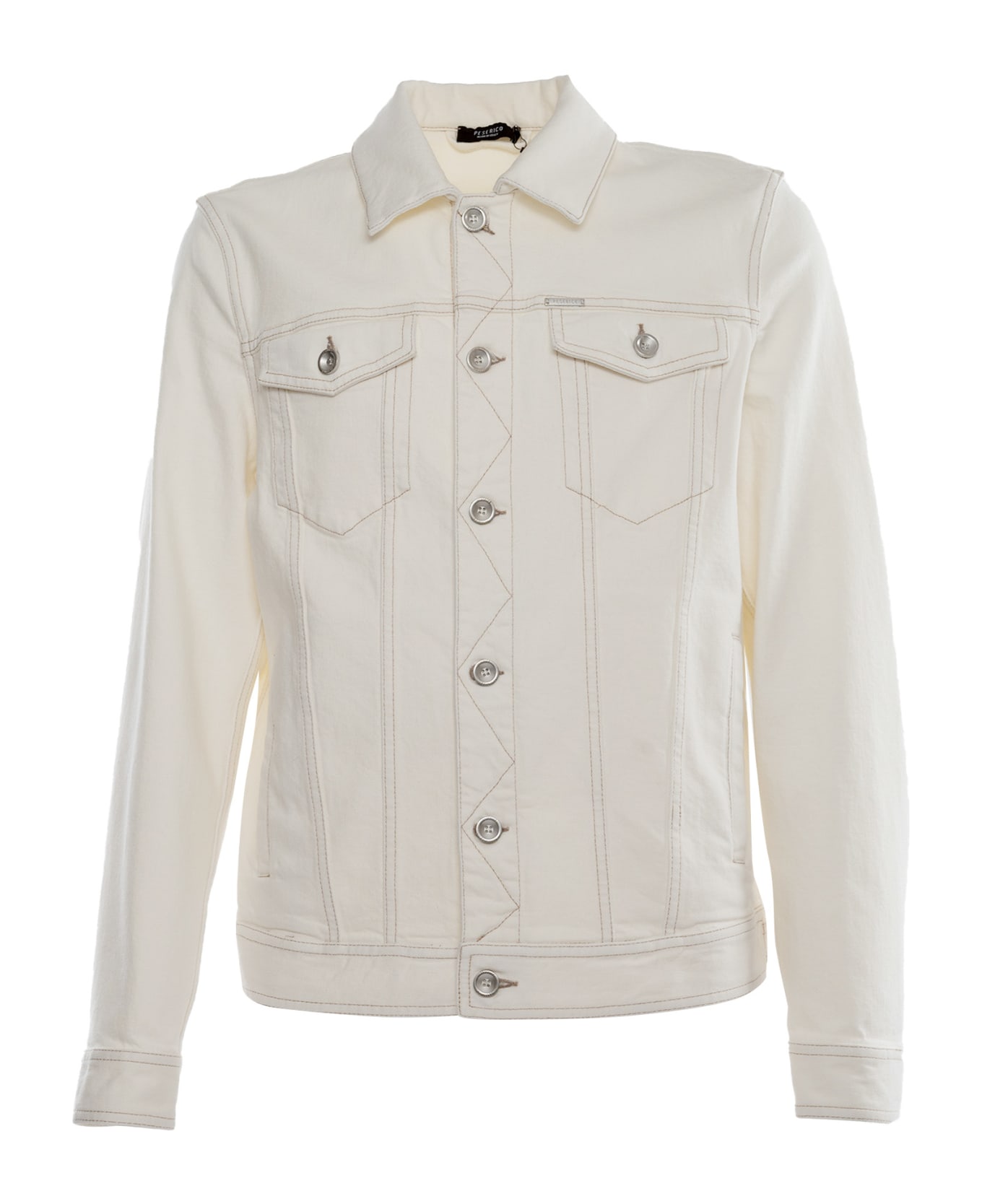 Stretch cotton jacket, contrast stitching, flap pockets on the chest, logo, adjustable waist Composition: 98% Cotton 2% Elastane