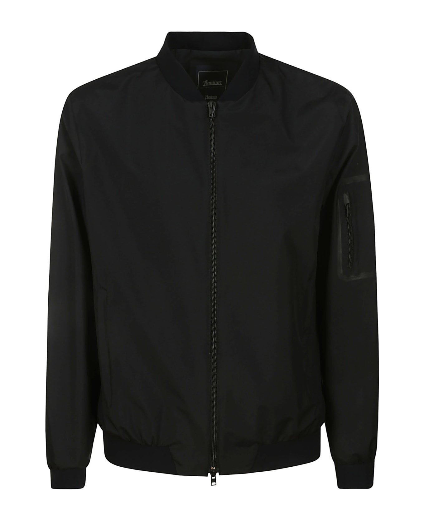 Herno Black jacket, double-slider zip closure, zip pocket on the sleeve, cuffs and bottom in elastic fabric.