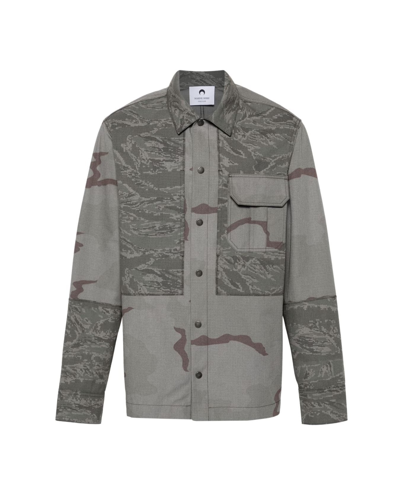 grey ripstop texture logo patch to the rear classic collar front button fastening long sleeves press-stud fastening cuffs stud-fastening chest pocket two slit pockets at the chest straight hem unlined