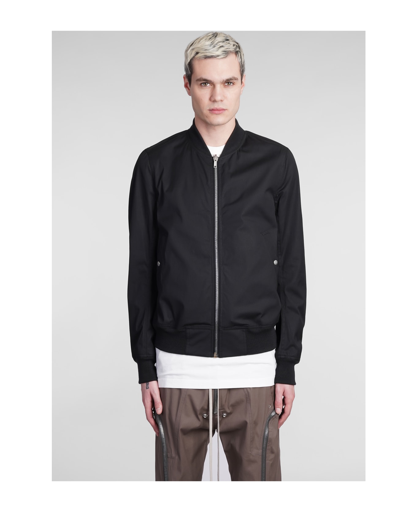 Casual jacket in black cotton, bomber collar, zip clousure, pockets on side, elastic cuffs, doubleface, Made in Italy, Model is 183 cm and wears 48