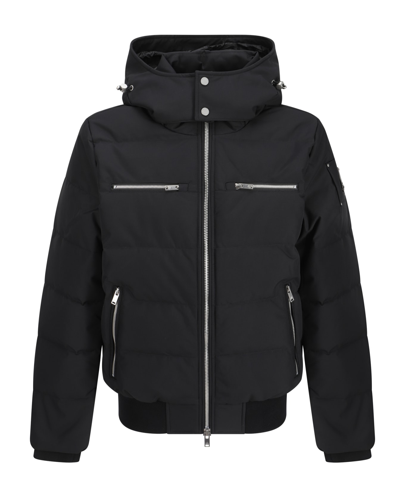 Cloud neoshear down jacket by moose knuckles, high-neck model with removable and adjustable drawstring hood, attachable and removable faux fur detail on hood, front closure by double-slider zipper, two zippered side welt pockets, two zippered front welt pockets, elasticized hem, brand's iconic logo patch applied on sleeve, quilted and all-over padded design.