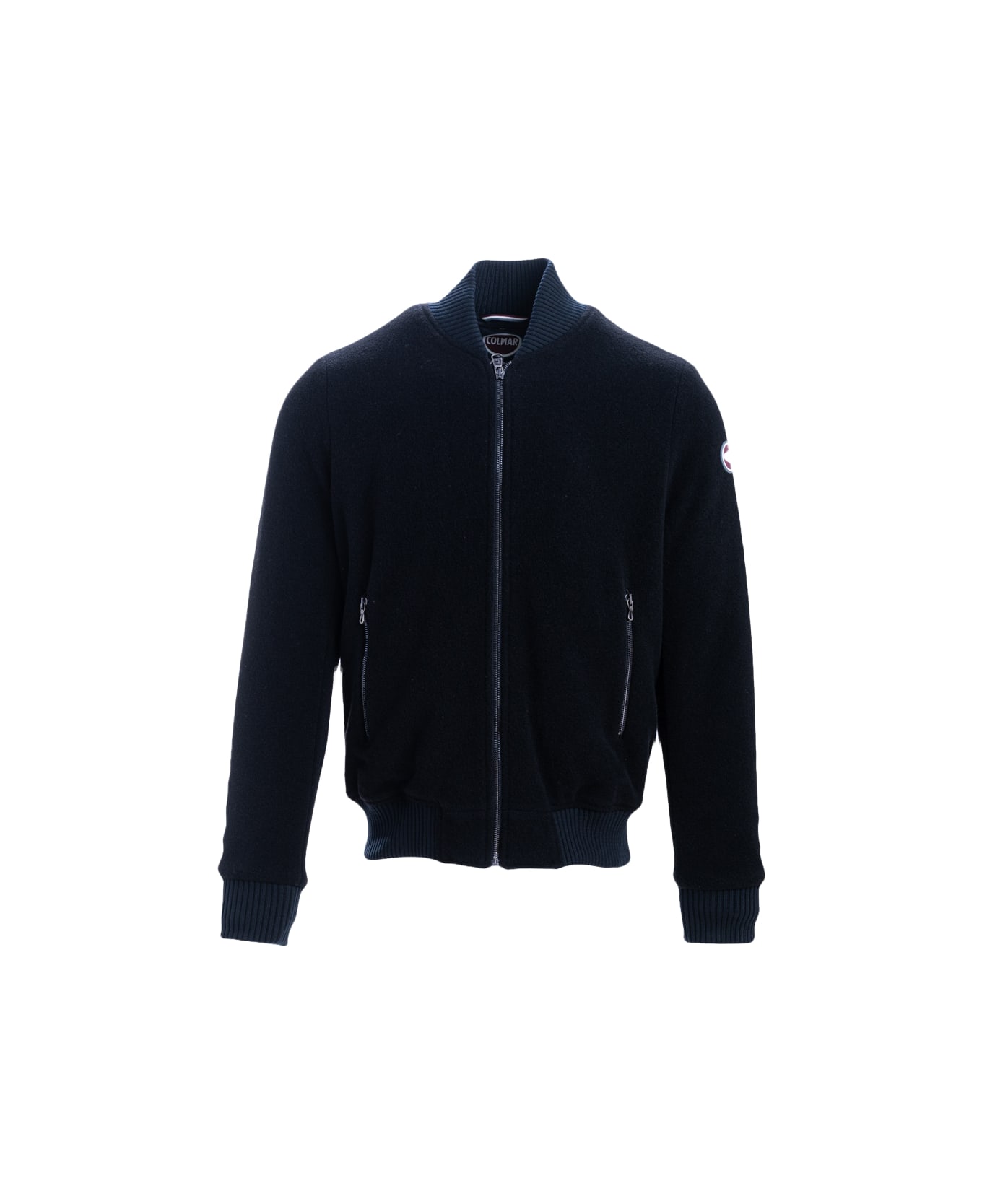 COLMAR ORIGINALS men's bomber wool jacket, black, contrasting rib details, zip fastening, two side pockets, inside zip pocket, ribbed cuffs, collar and hem, logo patch on sleeve and on back, Made in Italy.
