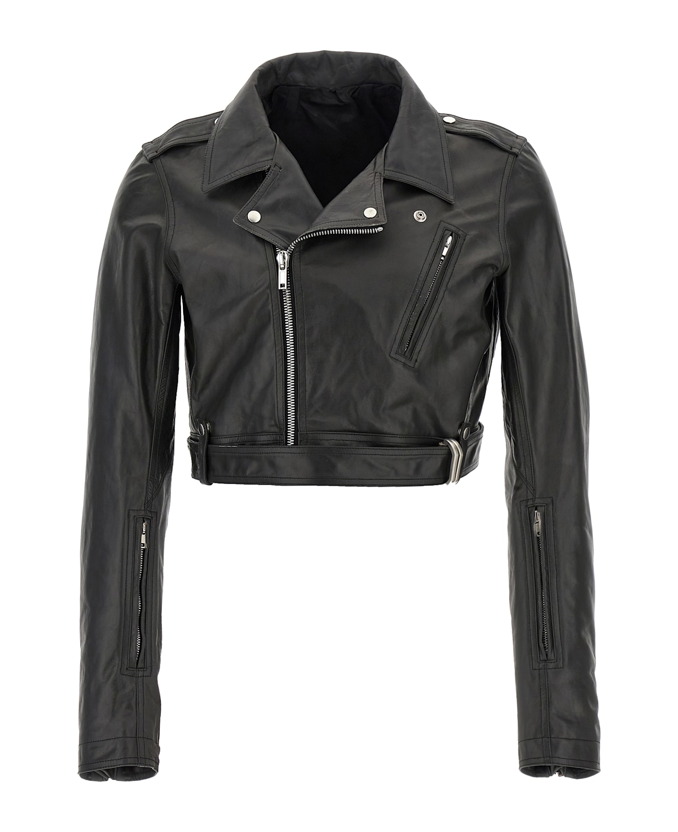 'Cropped Luke S Stooges' jacket in used-effect leather with crop biker style, asymmetric front zip closure, collar, pockets, badges, long sleeves with zip on the cuffs, removable belt. Composition: 100% calfskin leather (Bos Taurus)