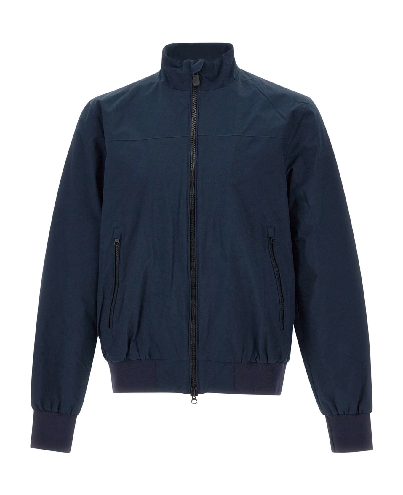 Save The Duck "Dark16 Finlay" men's jacket, midnight blue, Rainy collection, Harrington-inspired cut, made of three-layer fabric with recycled polyester shell to guarantee excellent waterproofing (3000mm) and breathability (3000g/sqm/24h) performance, ribbed bottom and cuffs, front zip fastening, two side pockets with vertical zip, iconic logo patch on left sleeve, ideal for spring and summer season.
