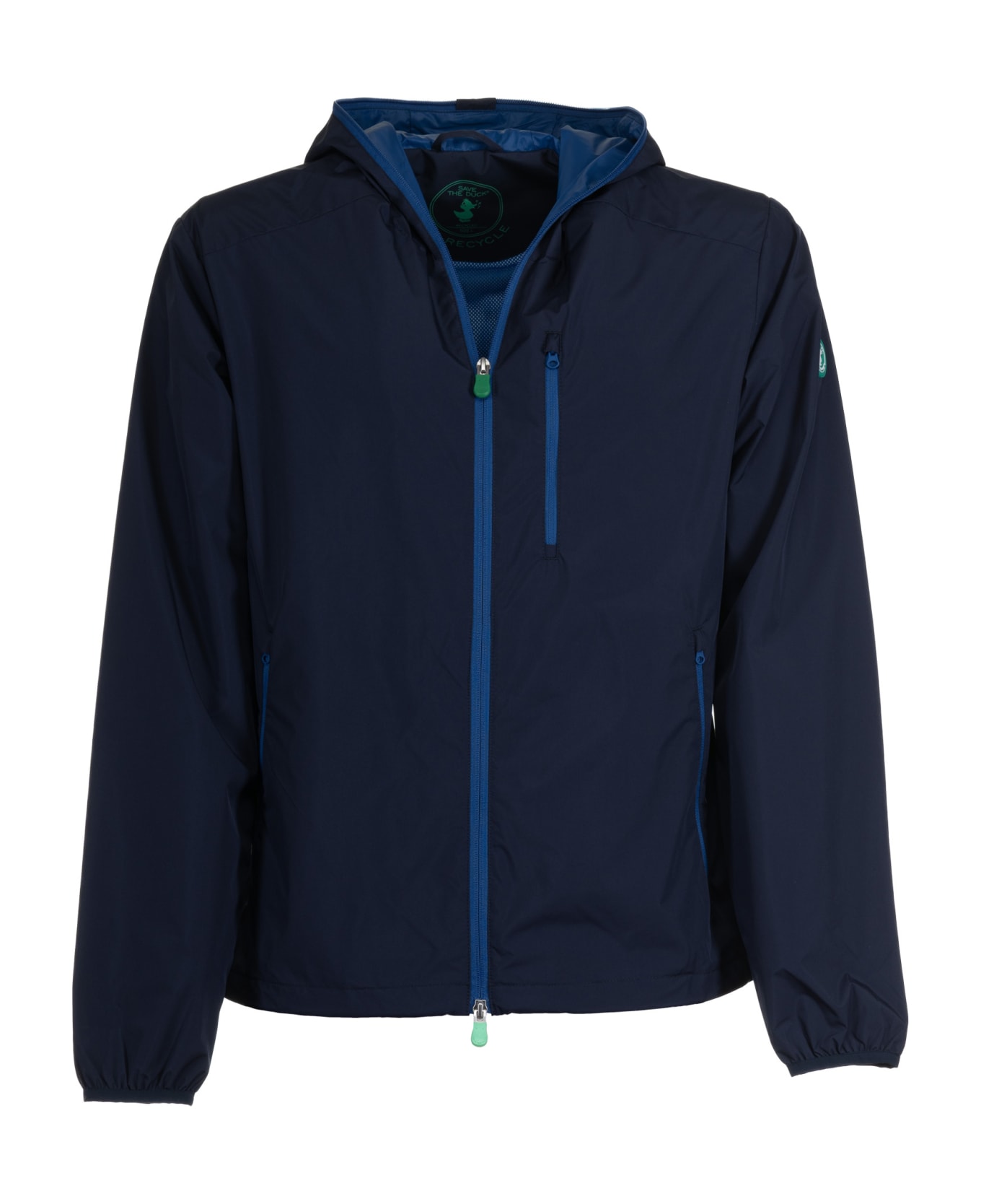 Blue wind jacket with hood and zip closure from Herno. - fit the true size - composition: polyammid - made in extra EU