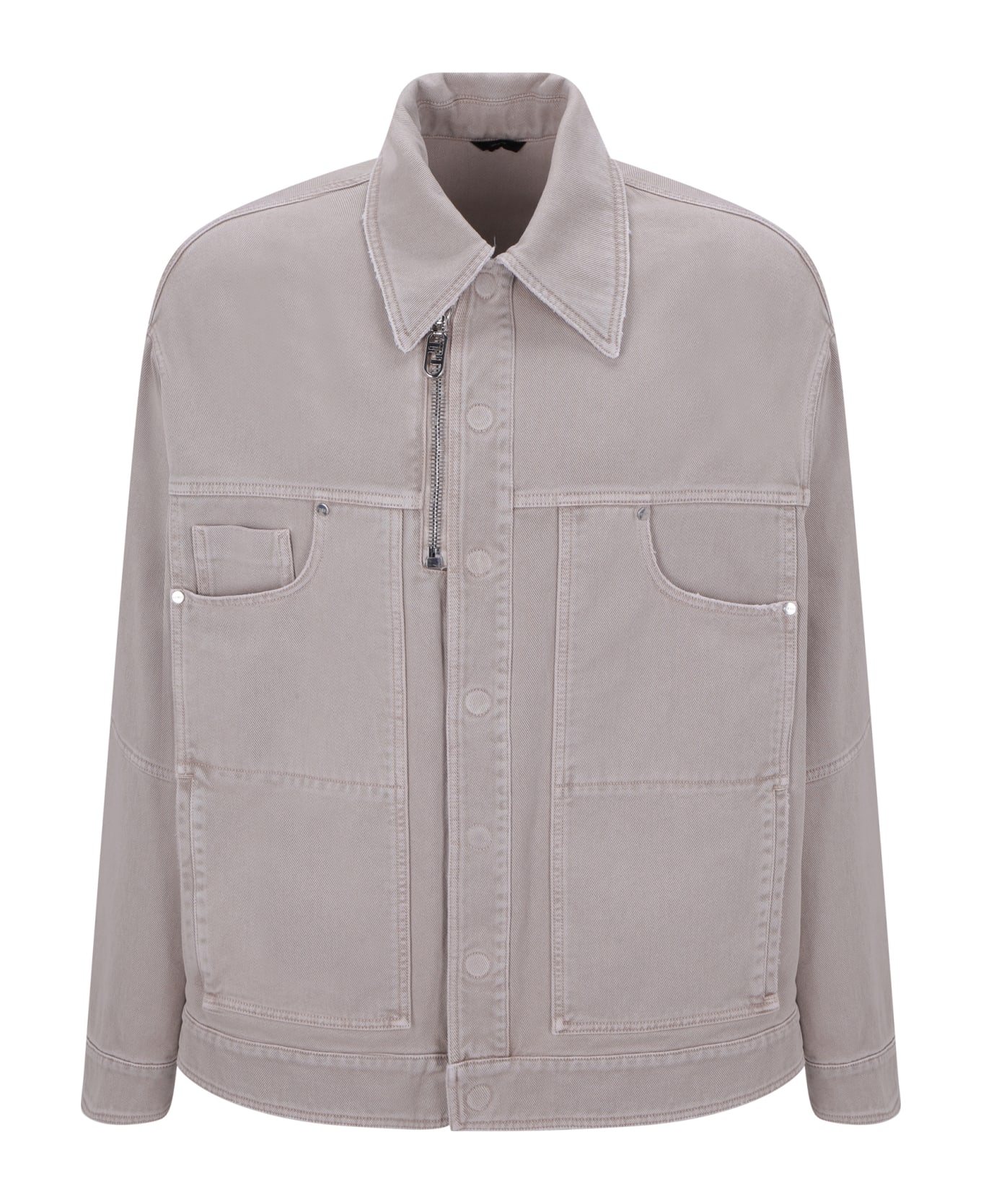 Cotton denim jacket by fendi, classic collar, a front button fastening, two large cargo pockets and a ticket pocket applied to the front, a zip detail applied in parallel to the front fastening, adjustable cuffs with a button, two welt pockets on the sides, iconic brand logo embroidered in tone-on-tone on the back, and a regular fit.