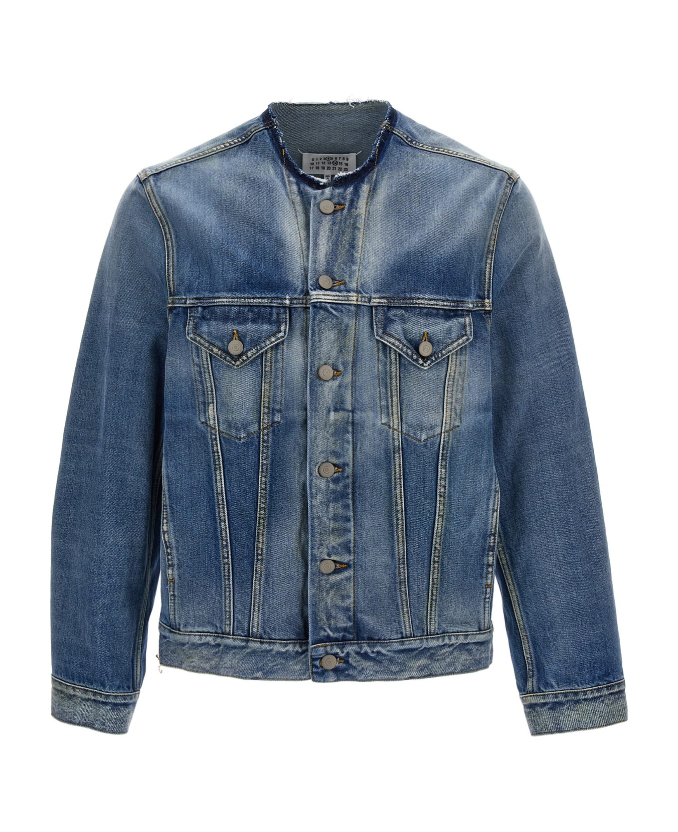 Cotton denim jacket with button closure, décortiqué details, front pockets, long cuffed sleeves. Composition: 100% cotton