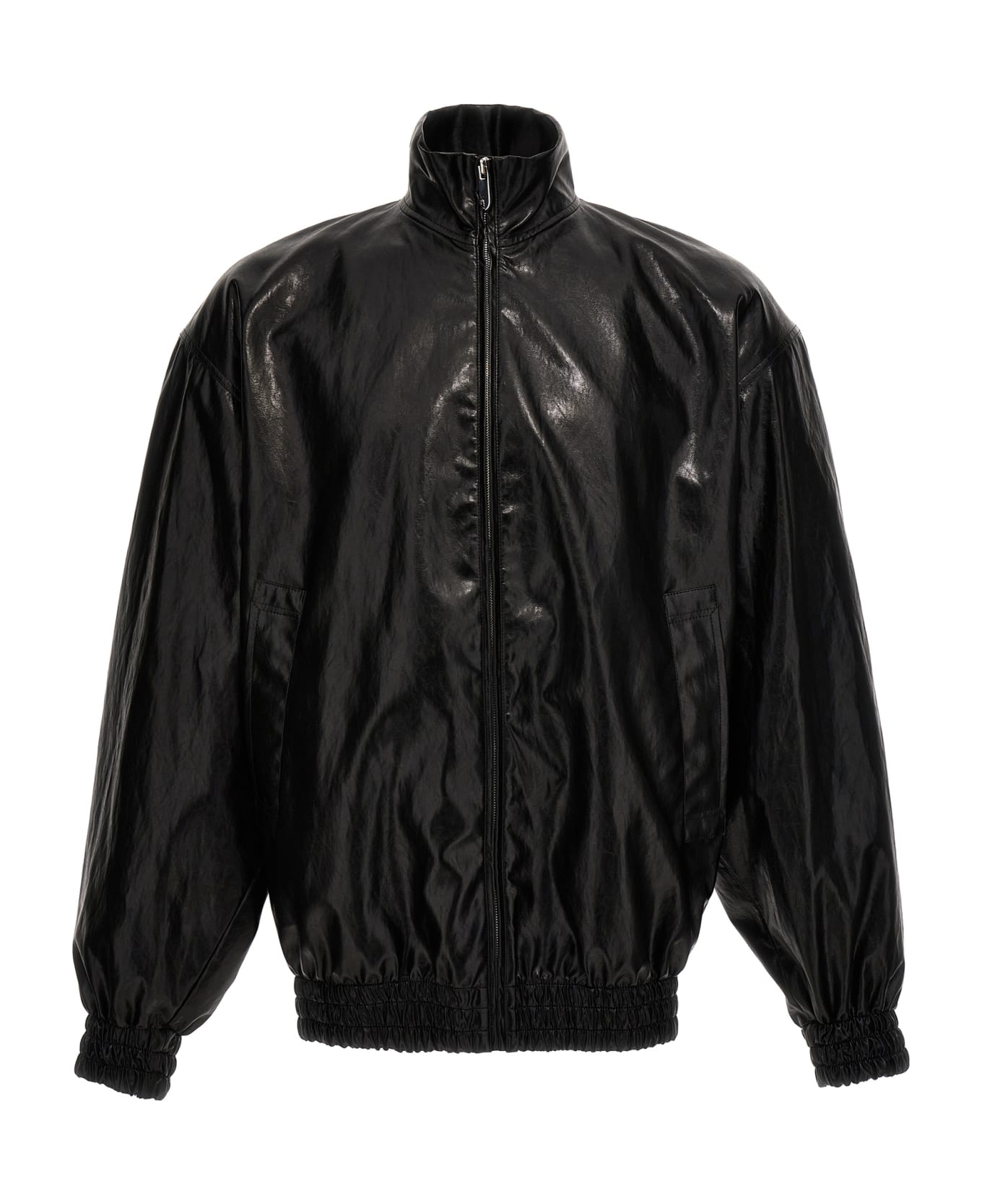 Eco leather bomber jacket with zip closure, elastic on the bottom and cuffs, high neck.