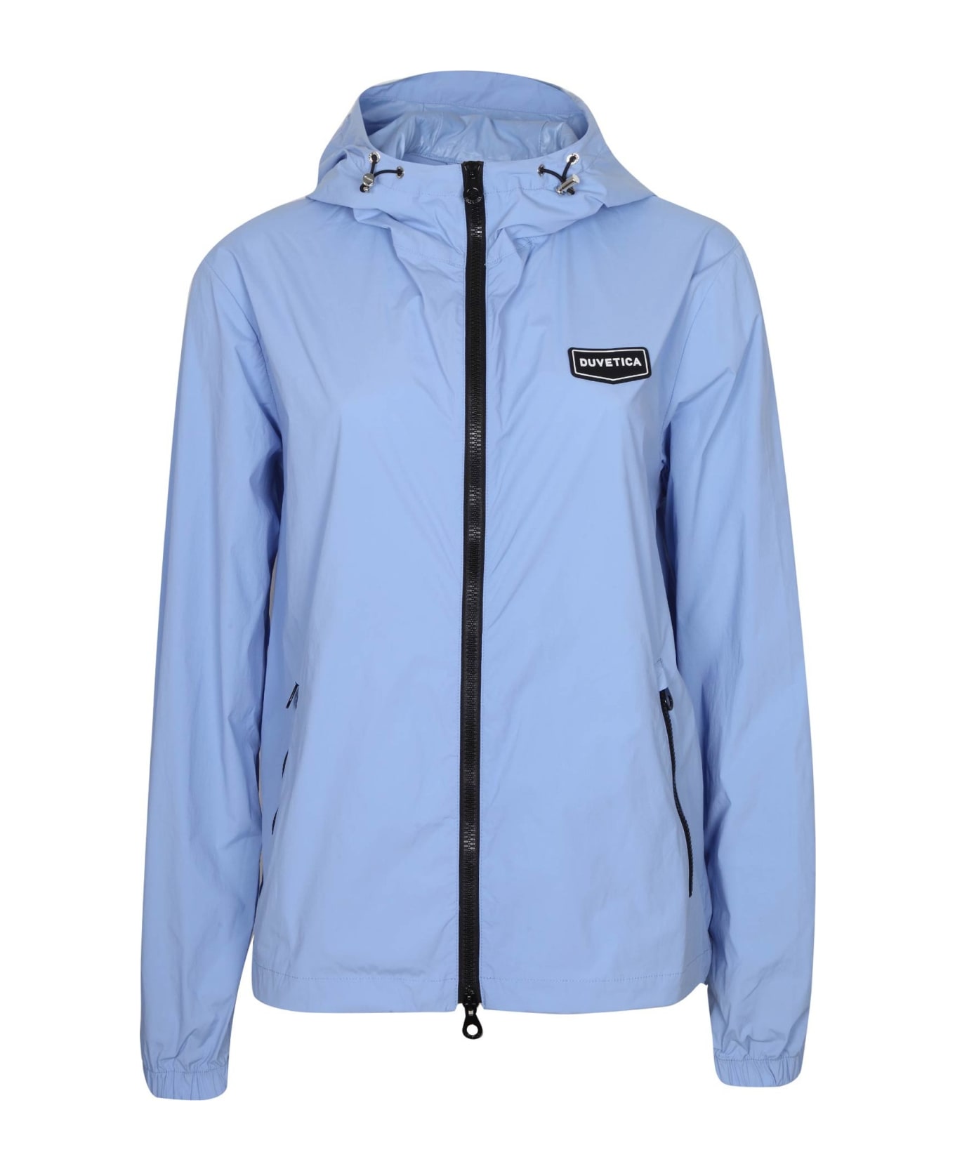 Windbreaker light blue color double slider closure side pockets with zip hood with drawstring duvetica logo external composition: polyamide 89%, polyurethane 11% internal composition: 100% polyester comfortable and soft line made in china