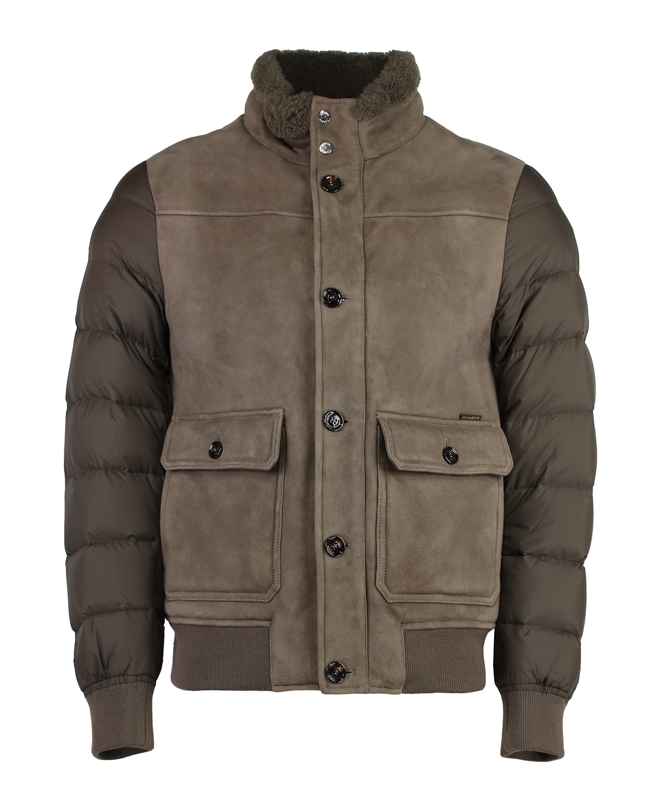 Two buttoned front flap pockets two side pockets ribbed edges padding: 100% goose down 100% chamois, 100% polyamide, 94% virgin wool, 6% cashmere Composition: 100% % Chamois, 100% % Polyamide, 94% % Virgin Wool, 6% % Cashmere
