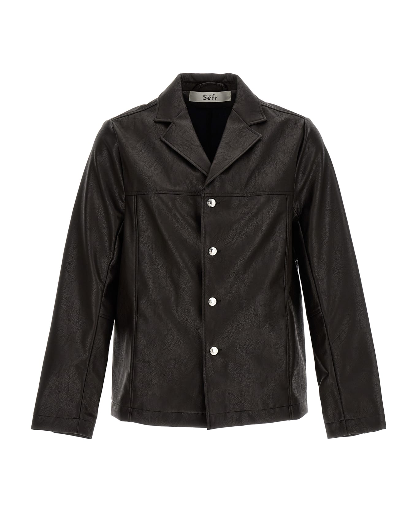 Francis' jacket in leather-effect fabric featuring a button closure, pockets and long sleeves.