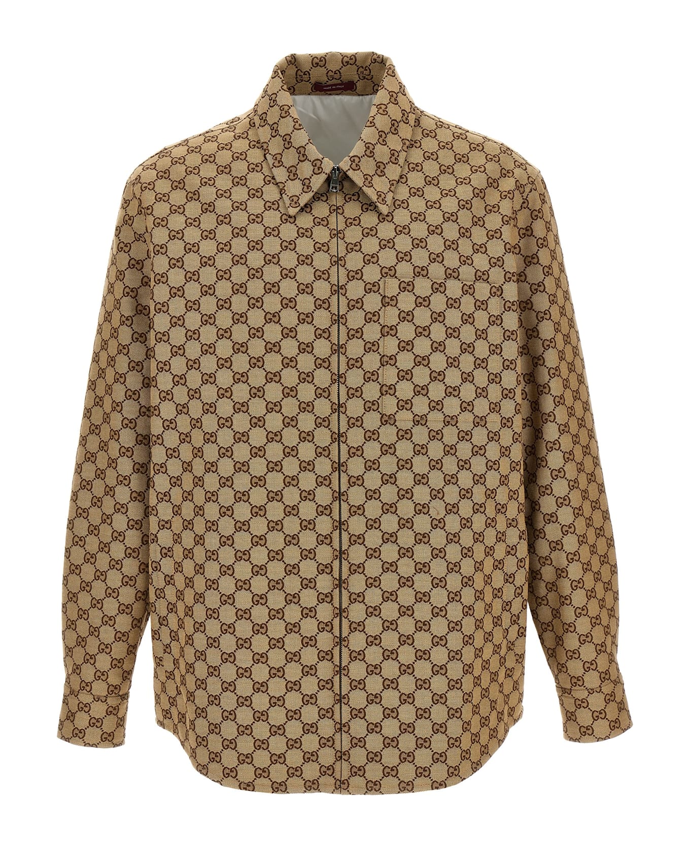 'GG' jacquard jacket, collar, front zip closure, pockets, long sleeves with adjustable cuffs with snap button. Composition: 100% cotton
