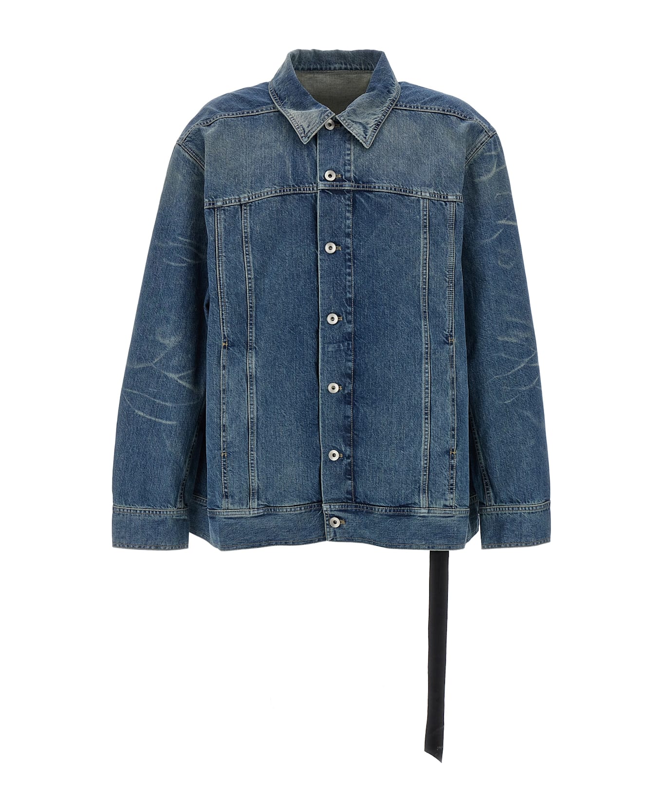 'Jumbo Worker' stonewashed cotton denim jacket with front button closure, pockets, long sleeves with cuffs and dropped shoulders.