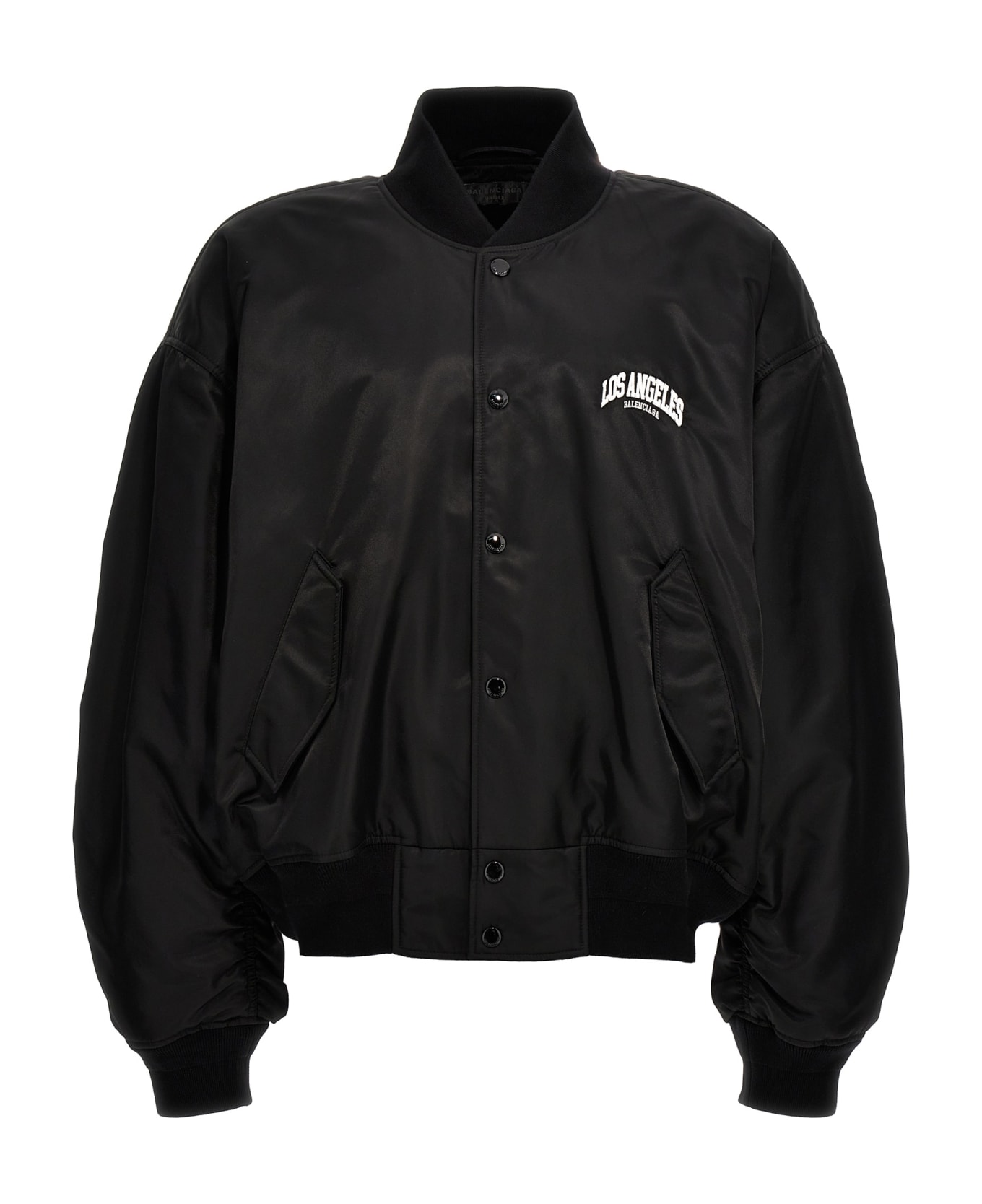 'LA Varsity' nylon bomber jacket with logo embroidery on the front and back, button closure, pockets, long sleeves with knitted cuffs. Composition: 100% polyamide