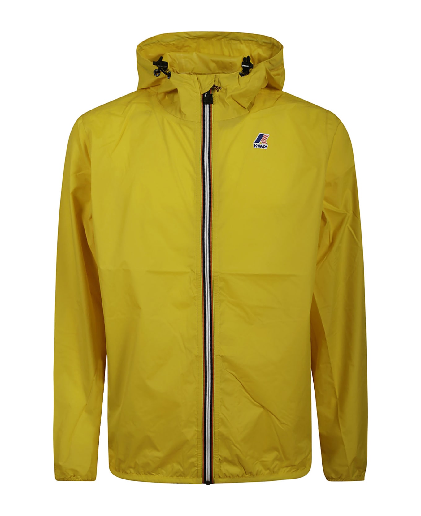 K-way Yellow nylon jacket, hood with drawstring, waterproof, water-repellent, windproof, breathable ripstop fabric, heat-taped seams, adjustable hood with elastic cord, zip closure, internal windproof flap, elastic cuffs, 2 zip pockets, logo detail colorful printed.