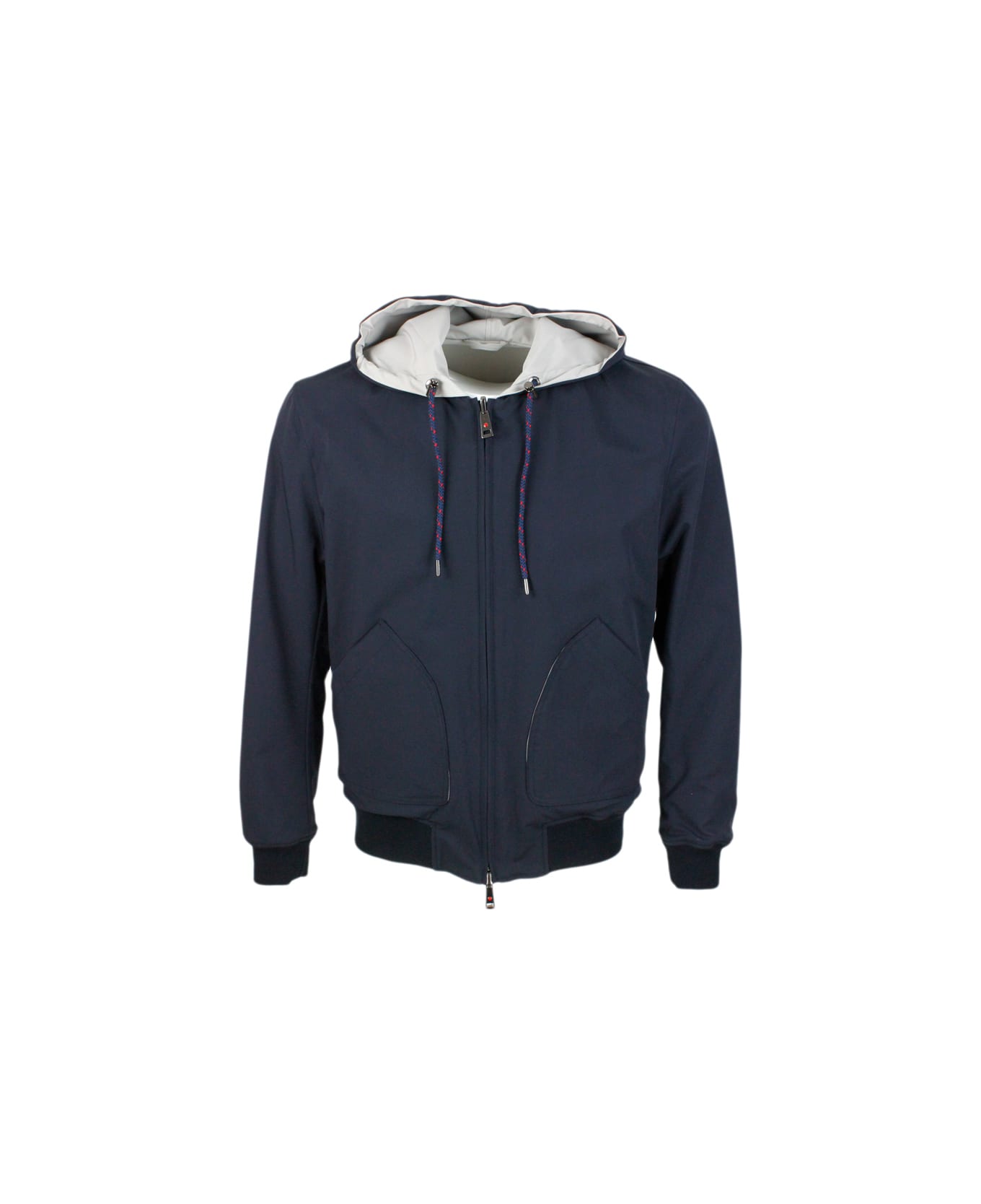 Lightweight windproof nylon jacket with drawstring hood, patch pockets and zip closure Composition: 83% Polyamide, 17% Elastane